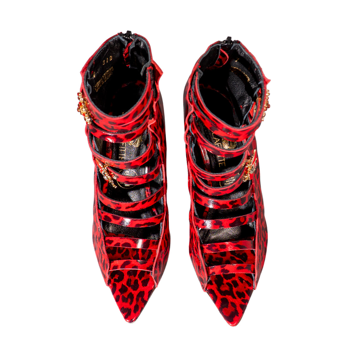 Zapatillas Cortas Tiras 100% Piel Animal Print Rojo Tacón 8 cm superior cómodas