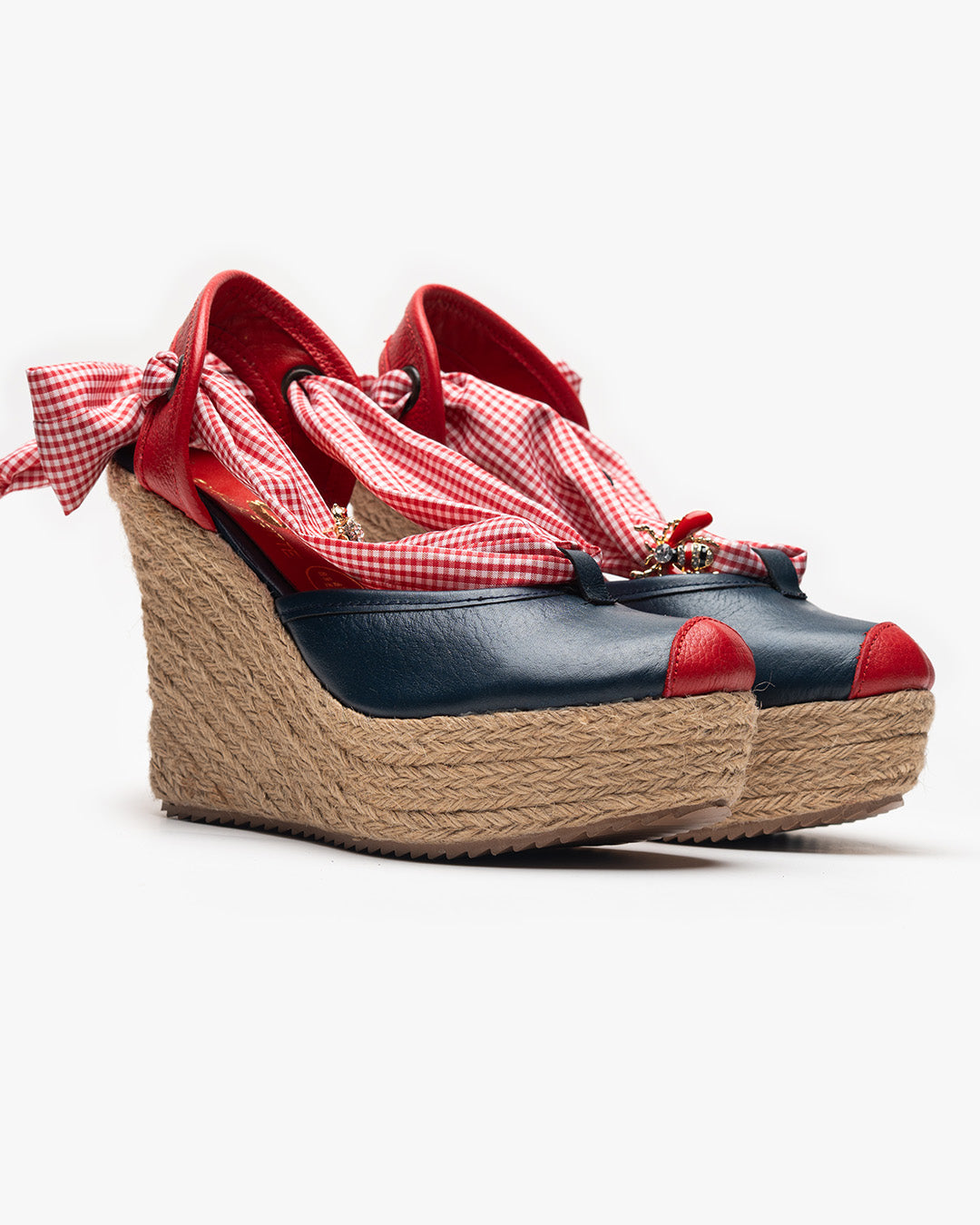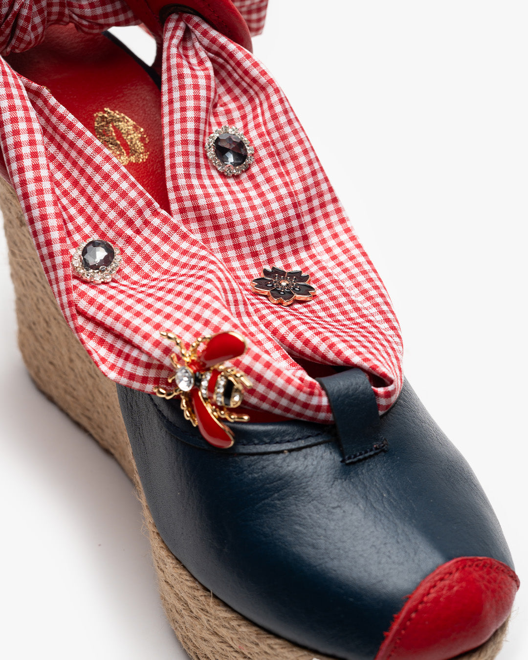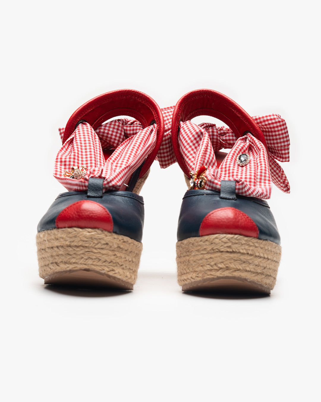 Alpargatas cerradas 100% piel, cómodas con tacón de 10 cm. Incluyen mascada y pompón a tu elección. Personalizalas aún más con accesorios extras disponibles en la sección Mascadas, Pompones y Pines.