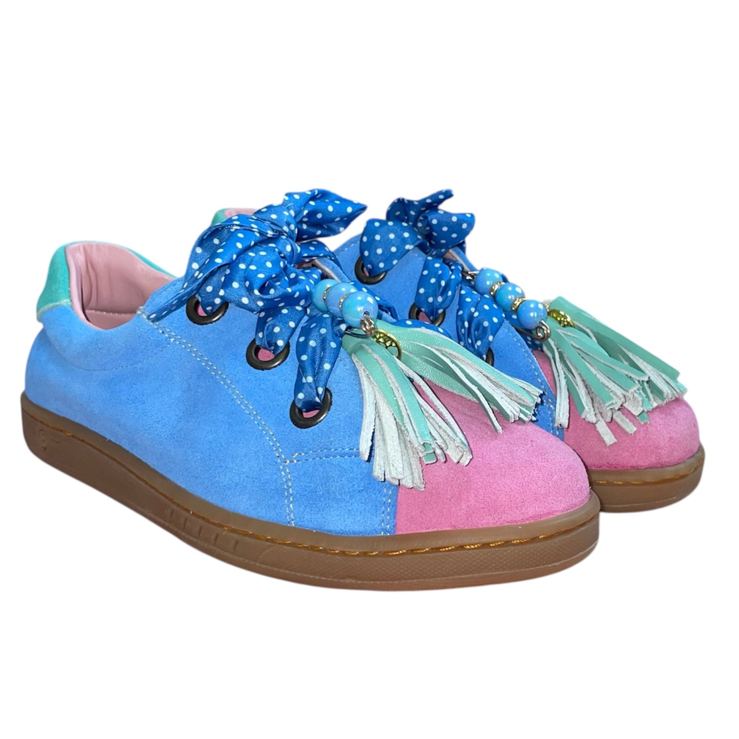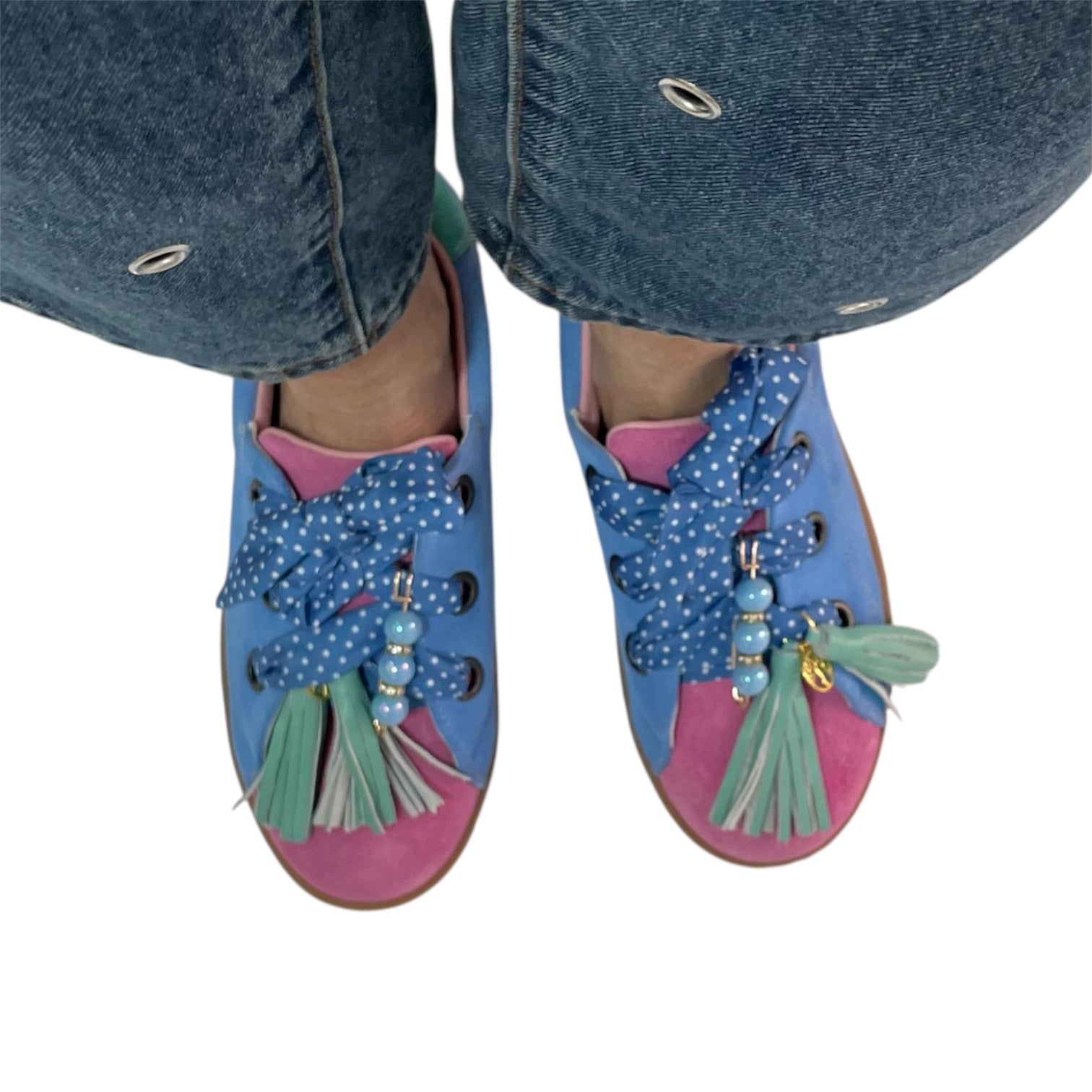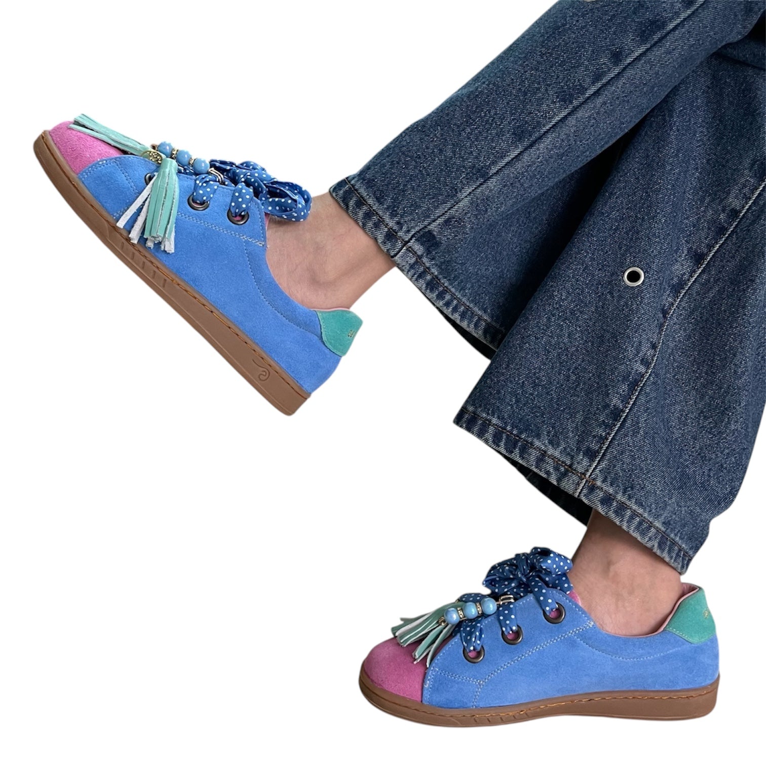 Nuestros tenis son 100% piel, ultra cómodos y cada par incluye una mascada y un pompón. ¡Personalízalos aún más! También puedes comprar mascadas, pompones y pines por separado. Descubre la colección completa.