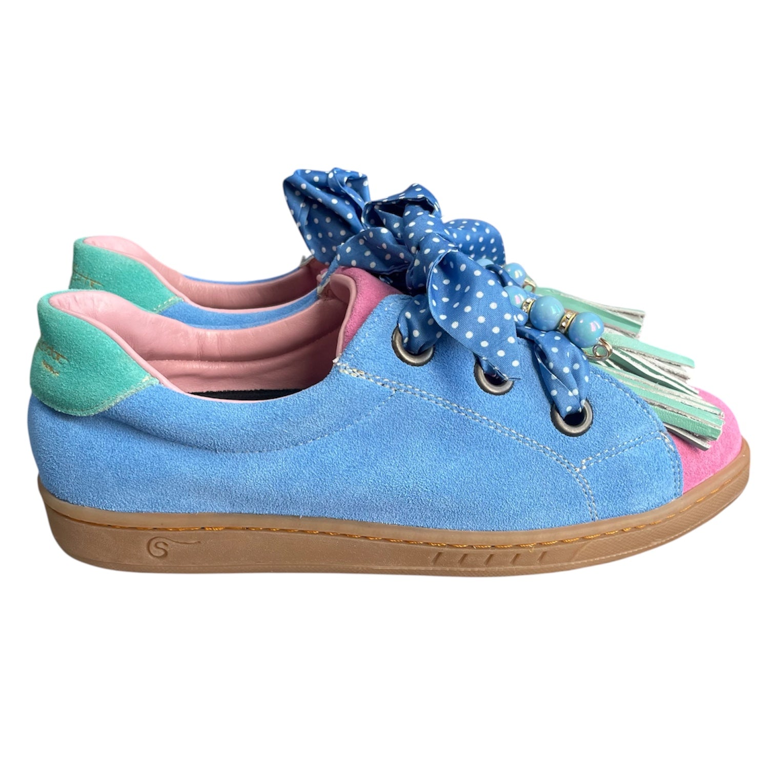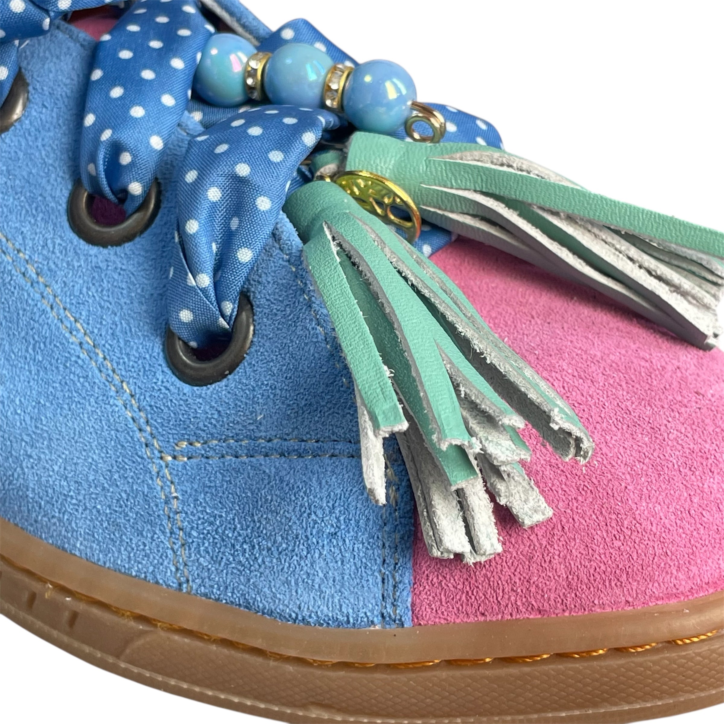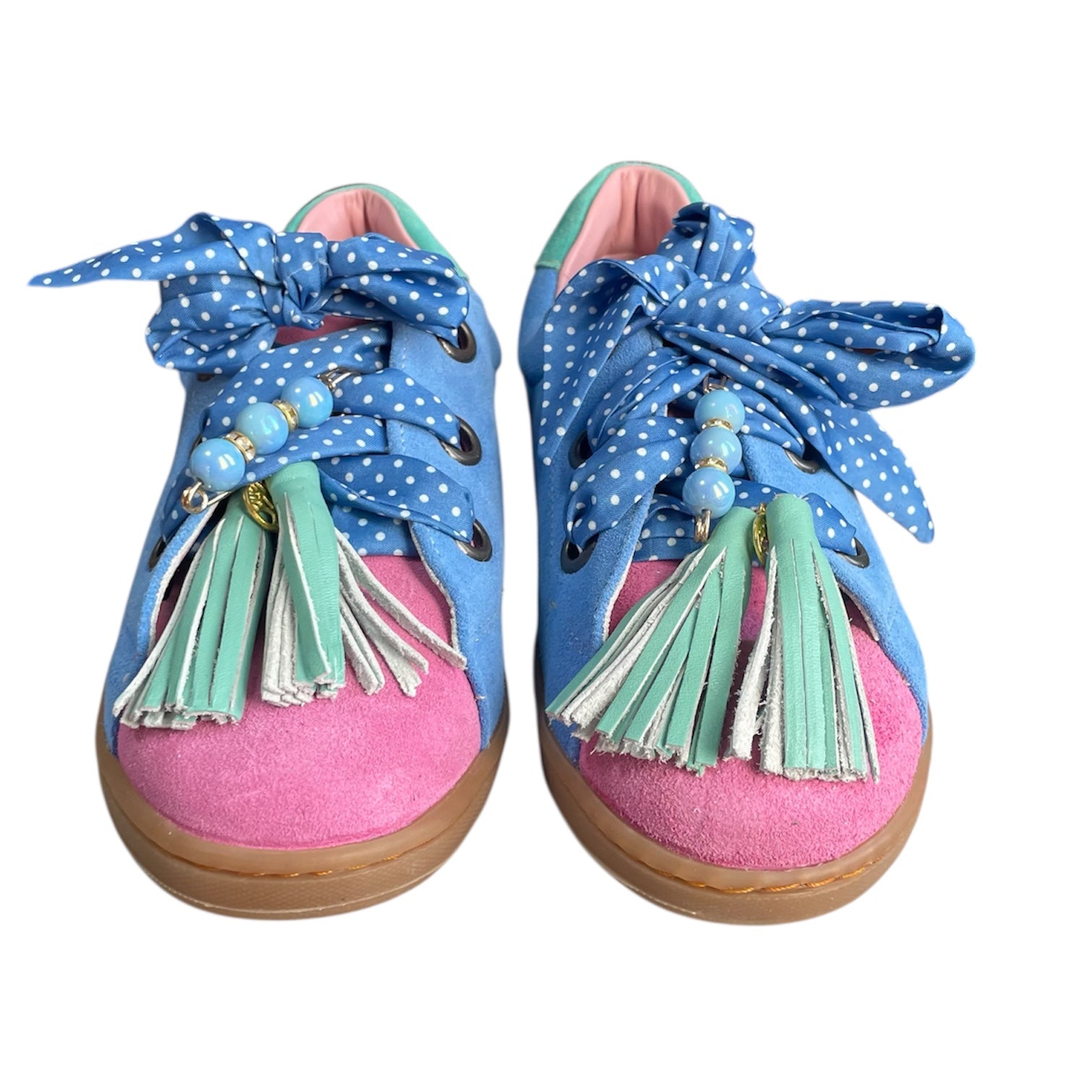 Nuestros tenis son 100% piel, ultra cómodos y cada par incluye una mascada y un pompón. ¡Personalízalos aún más! También puedes comprar mascadas, pompones y pines por separado. Descubre la colección completa.