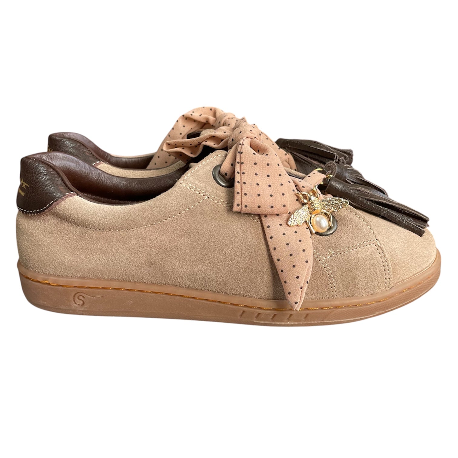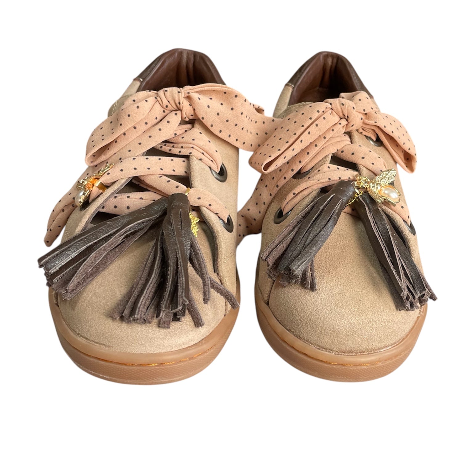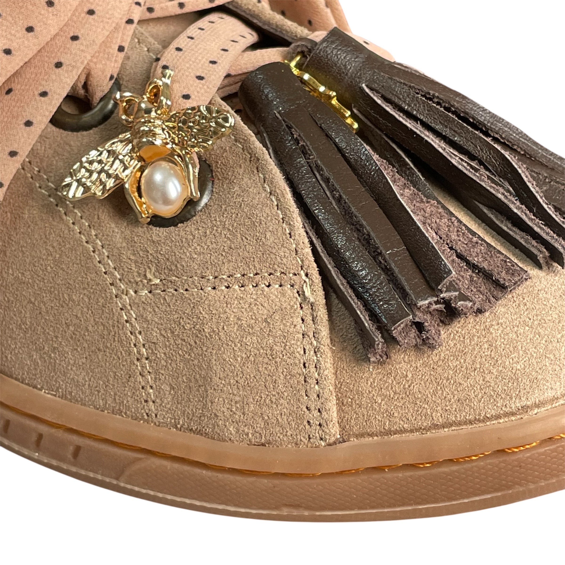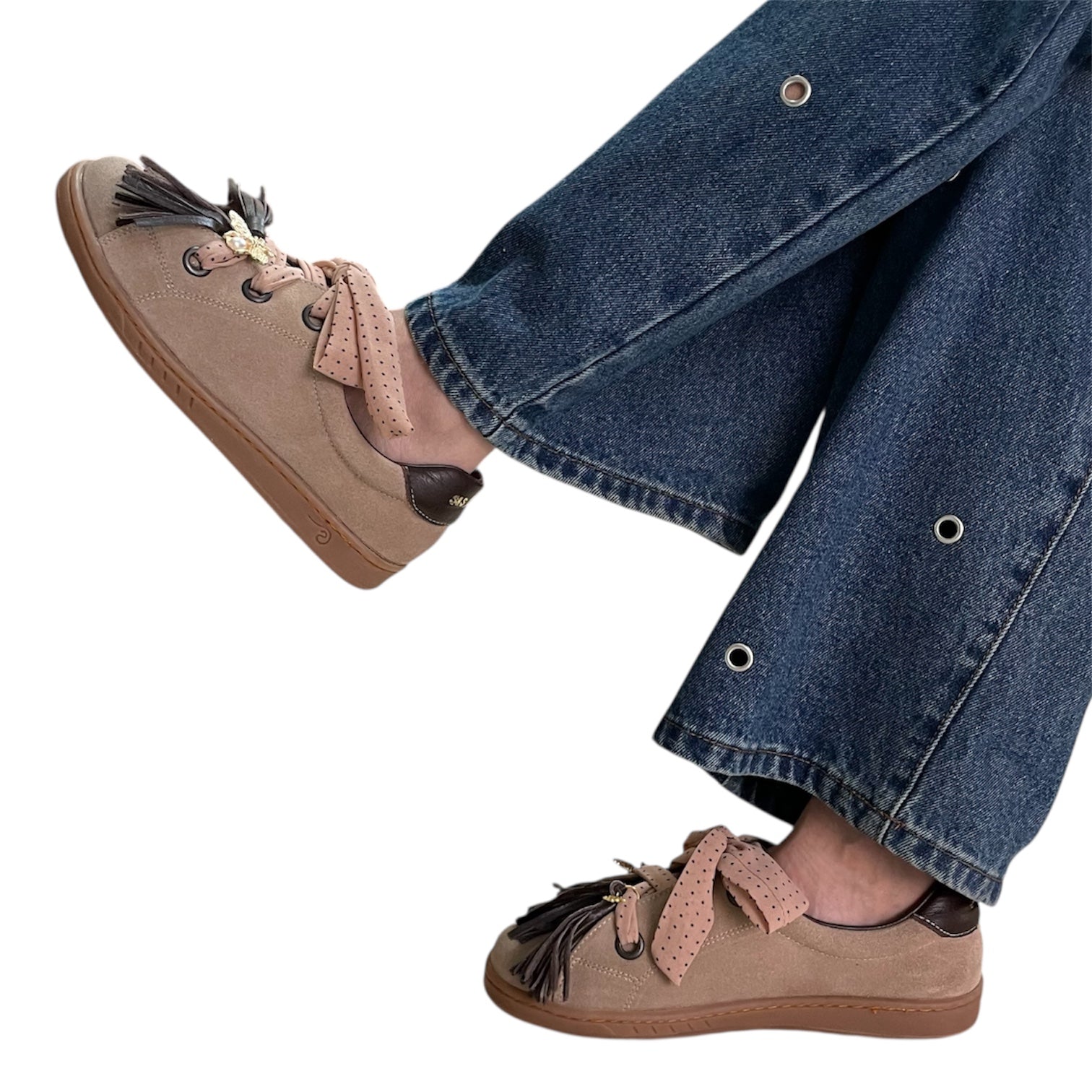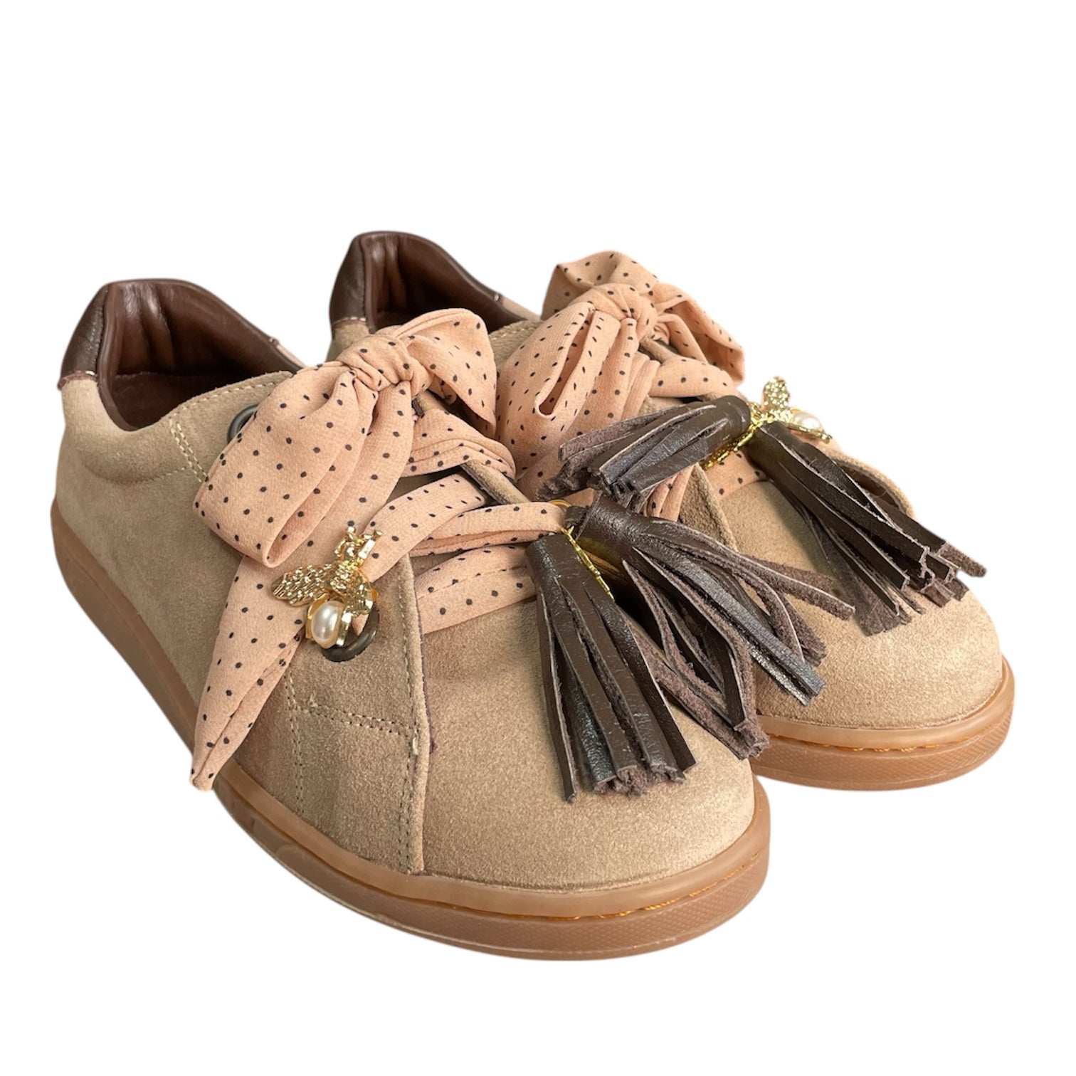Nuestros tenis son 100% piel, ultra cómodos y cada par incluye una mascada y un pompón. ¡Personalízalos aún más! También puedes comprar mascadas, pompones y pines por separado. Descubre la colección completa.