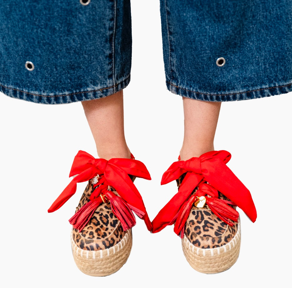 Nuestros zapatos son 100% piel, 5 cm de altura, yute, ultra cómodos y cada par incluye una mascada y un pompón. ¡Personalízalos aún más! También puedes comprar mascadas, pompones y pines por separado. Descubre la colección completa.