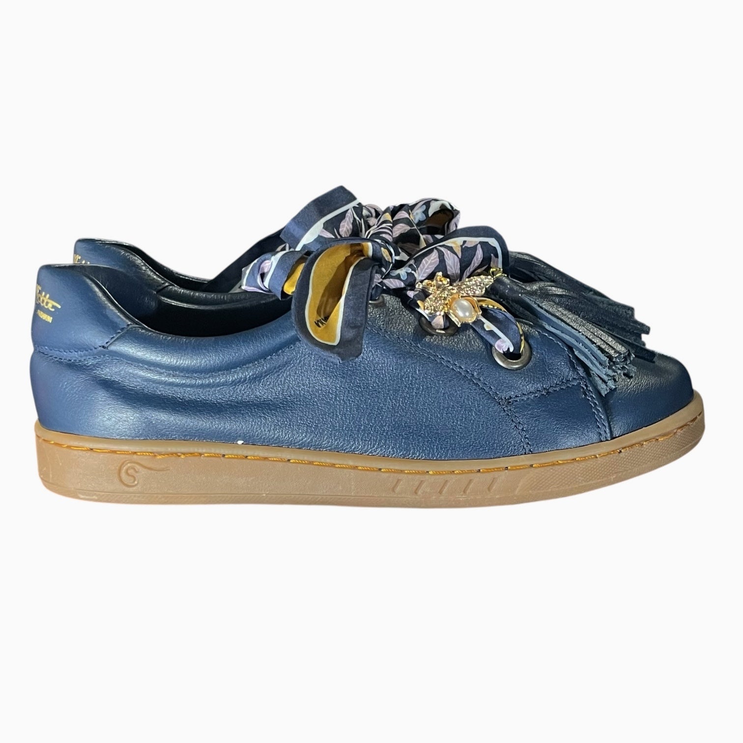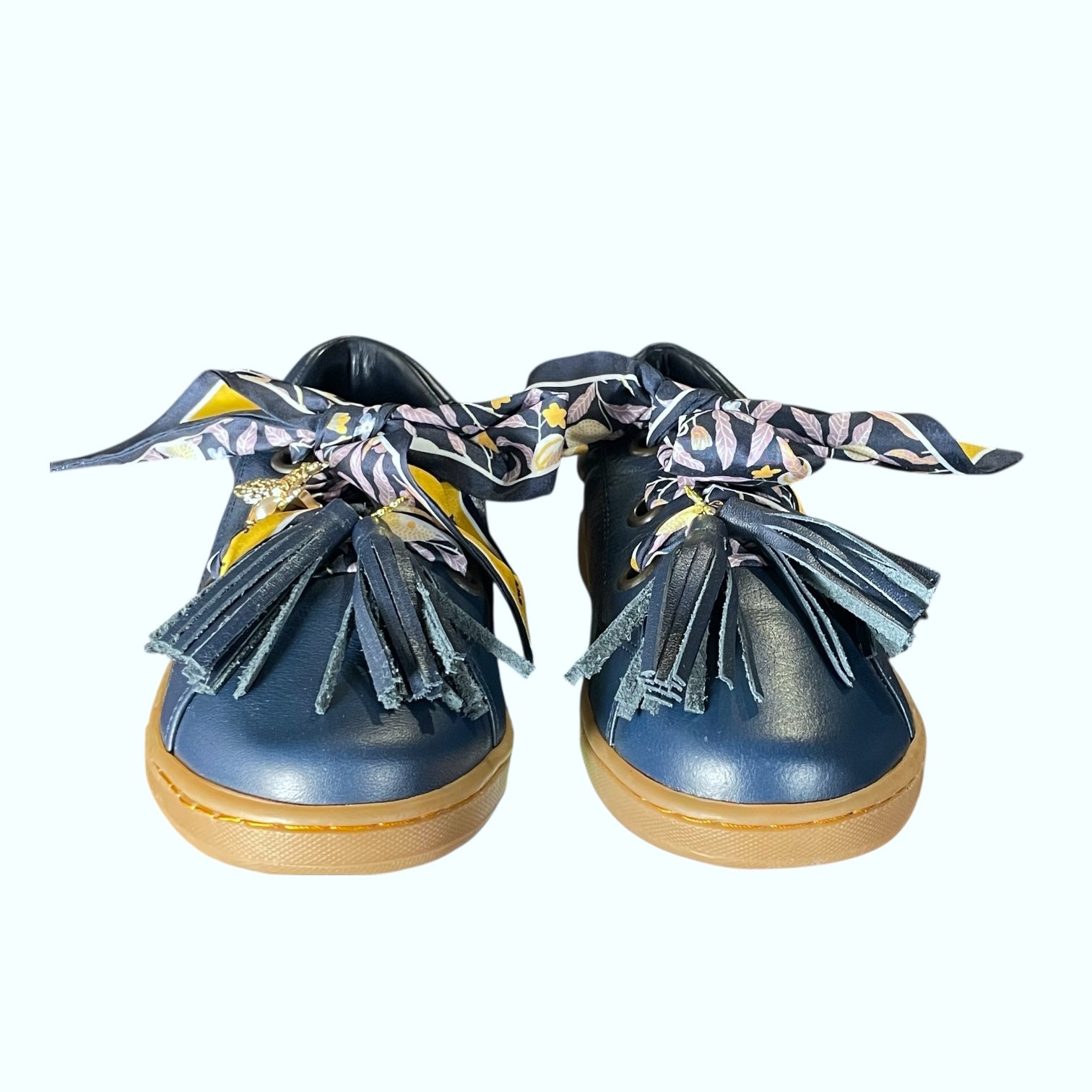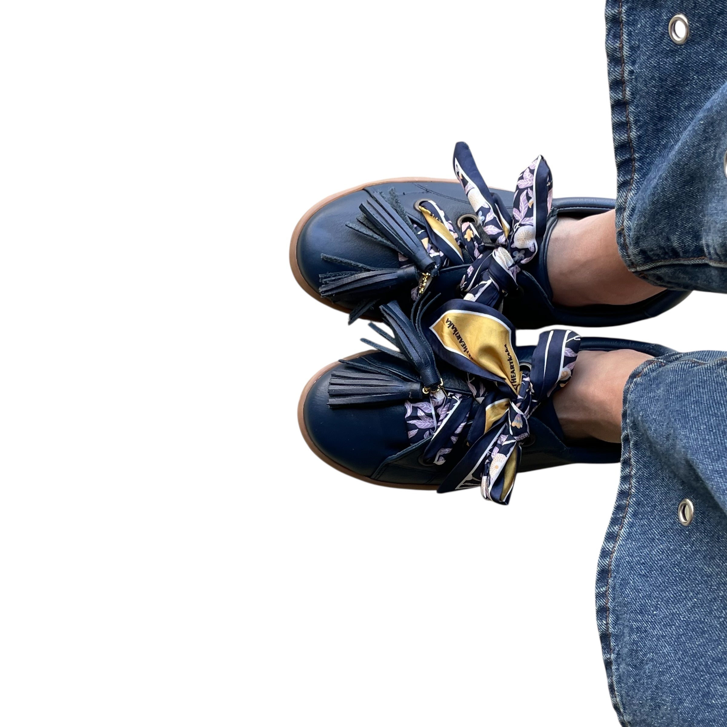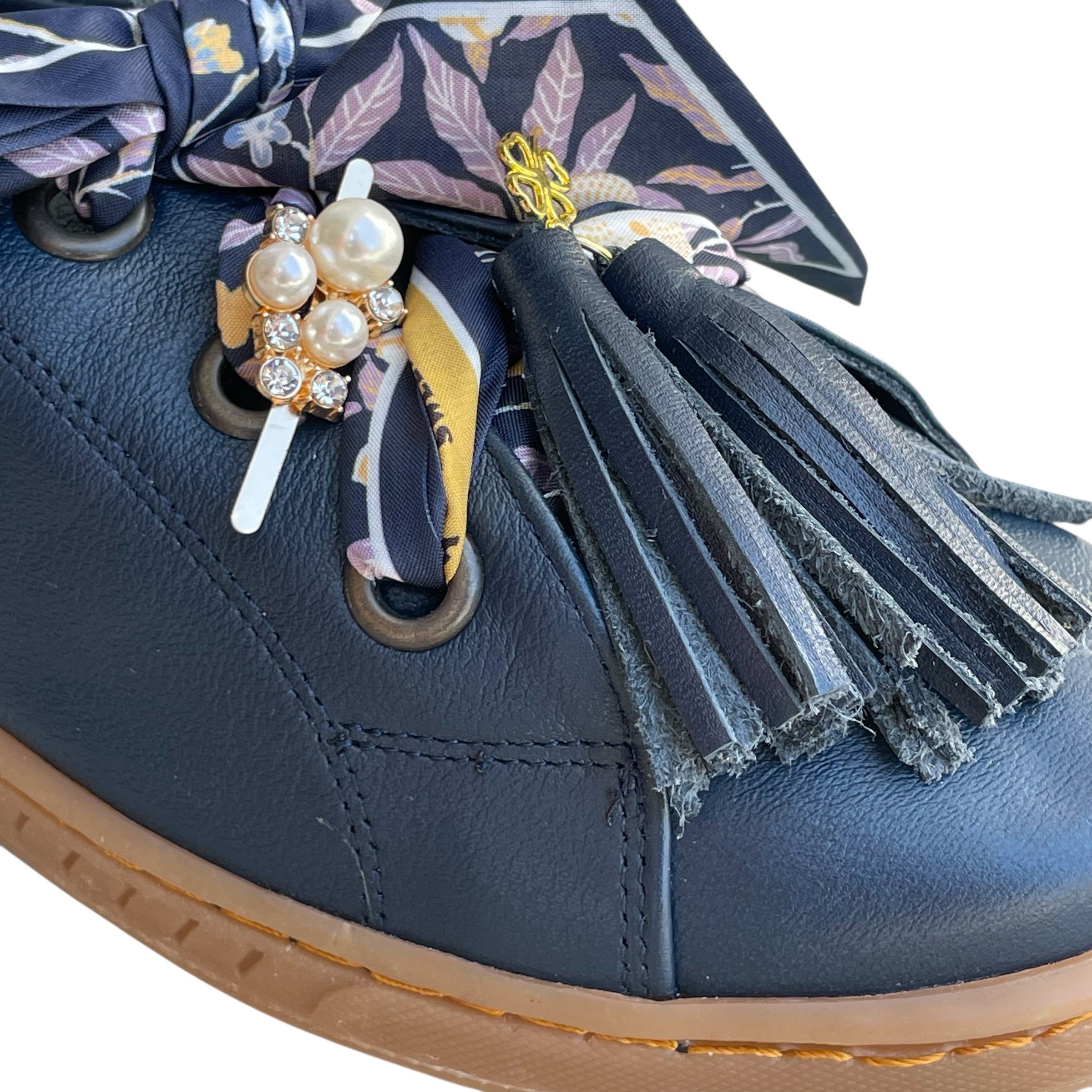 Nuestros tenis son 100% piel, ultra cómodos y cada par incluye una mascada y un pompón. ¡Personalízalos aún más! También puedes comprar mascadas, pompones y pines por separado. Descubre la colección completa.