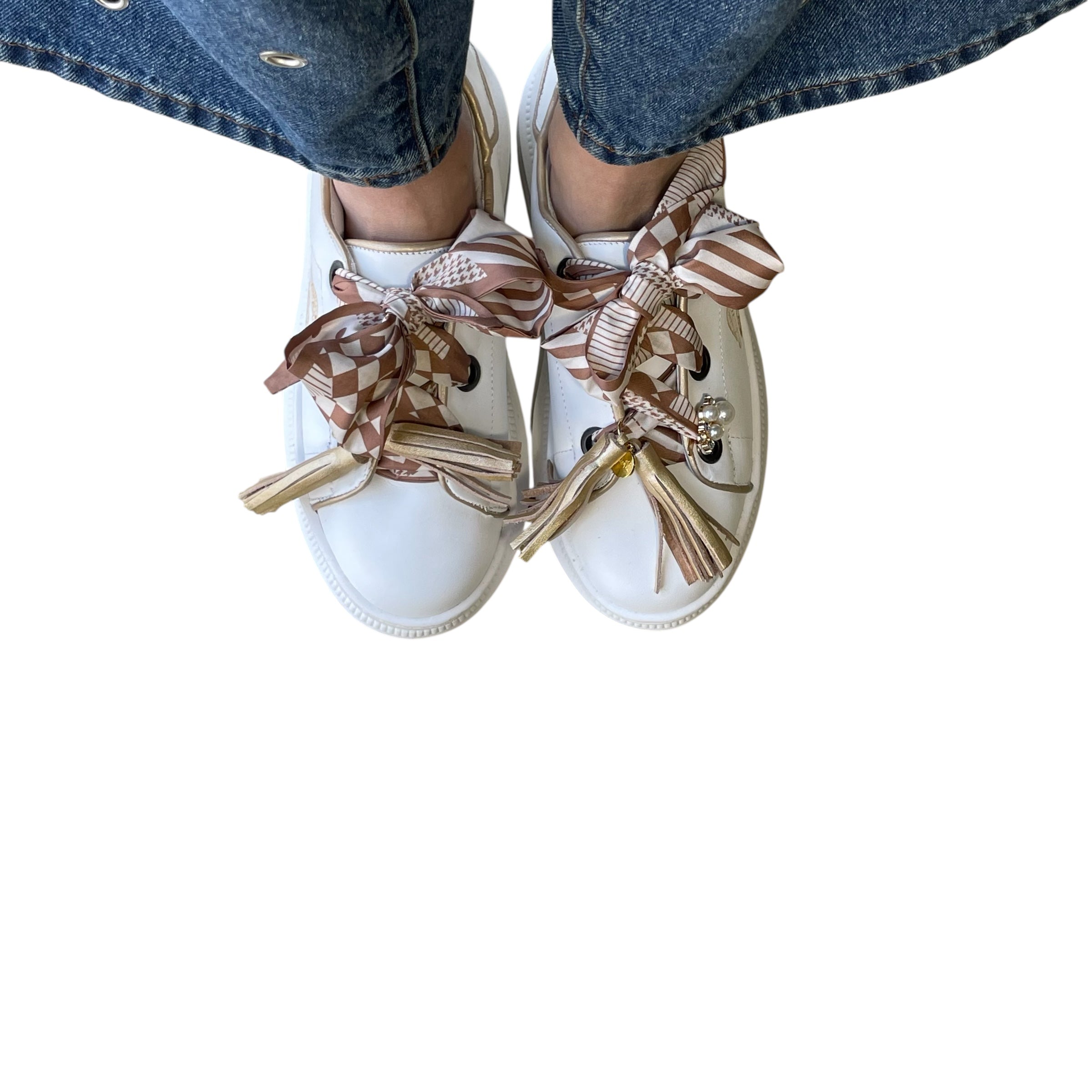 Nuestros zapatos son 100% piel, ultra cómodos y cada par incluye una mascada y un pompón. ¡Personalízalos aún más! También puedes comprar mascadas, pompones y pines por separado. Descubre la colección completa.