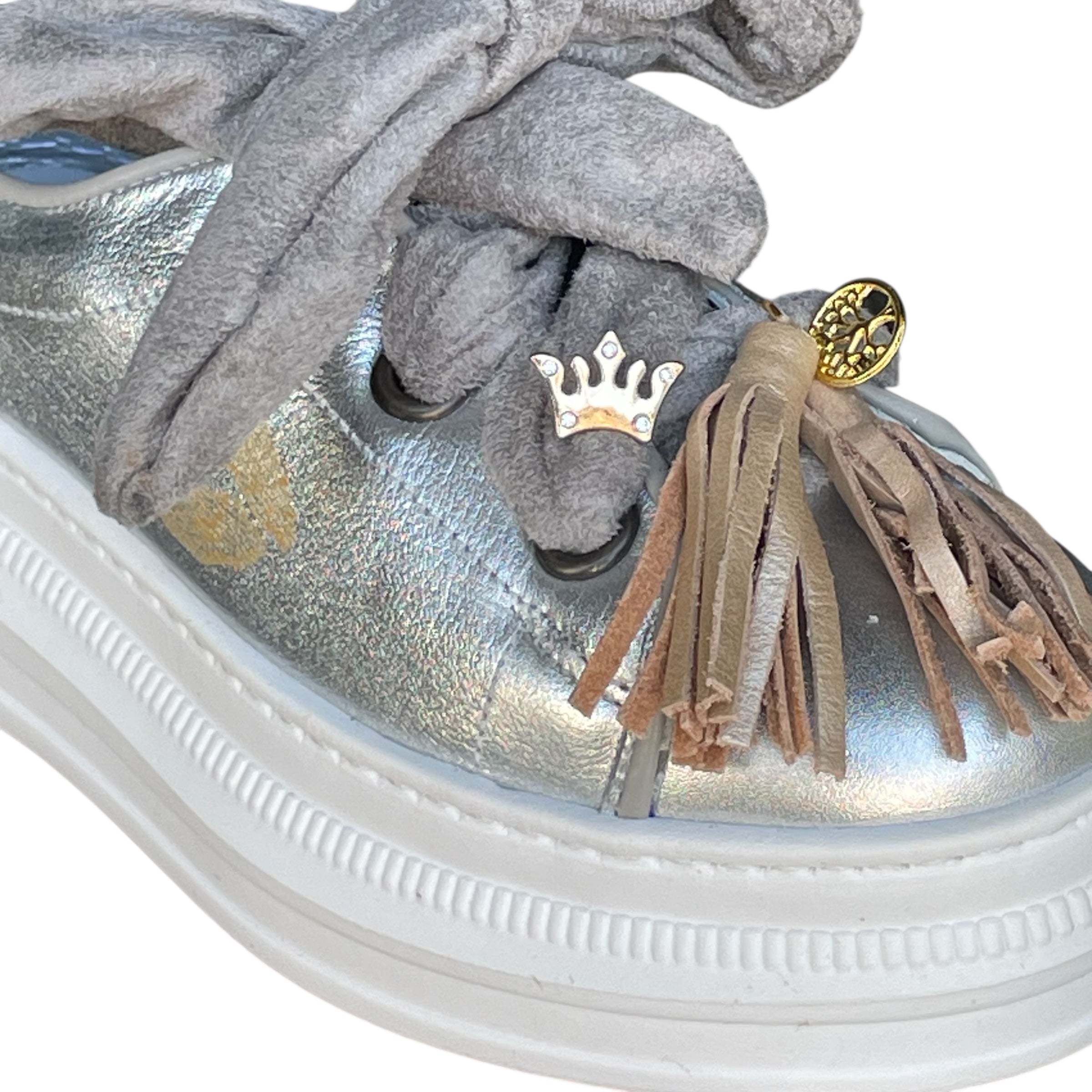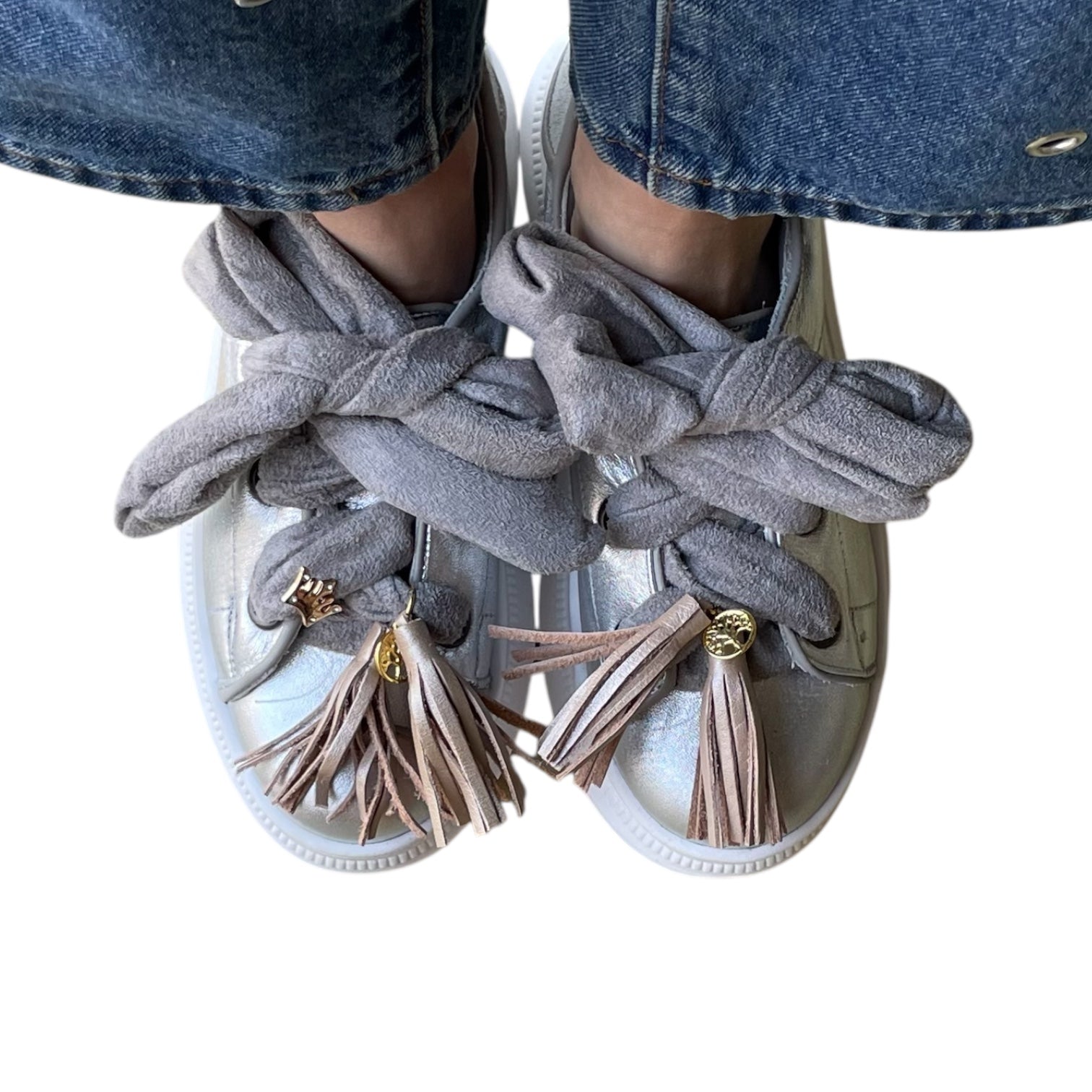 Nuestros zapatos son 100% piel, ultra cómodos y cada par incluye una mascada y un pompón. ¡Personalízalos aún más! También puedes comprar mascadas, pompones y pines por separado. Descubre la colección completa.