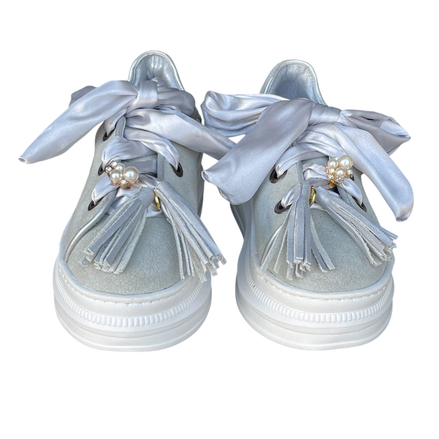 Nuestros zapatos son 100% piel, ultra cómodos y cada par incluye una mascada y un pompón. ¡Personalízalos aún más! También puedes comprar mascadas, pompones y pines por separado. Descubre la colección completa.