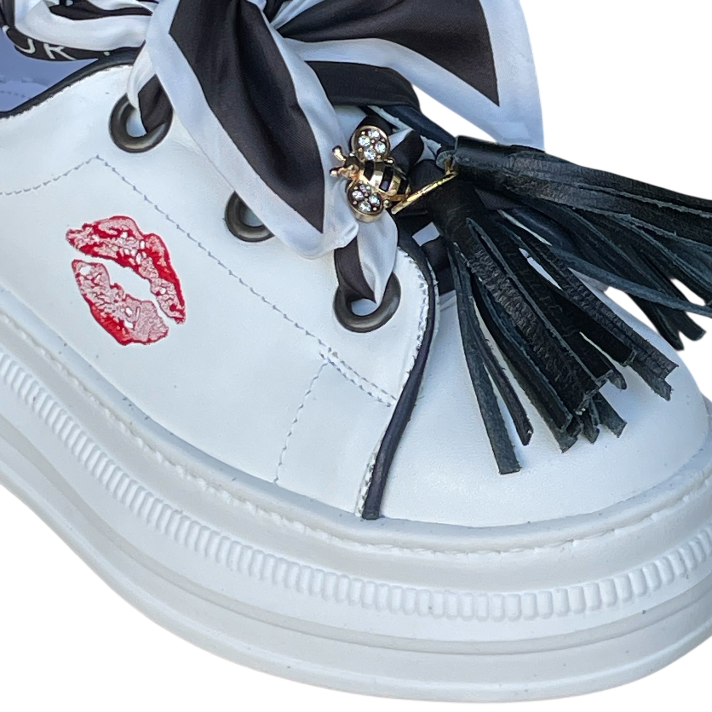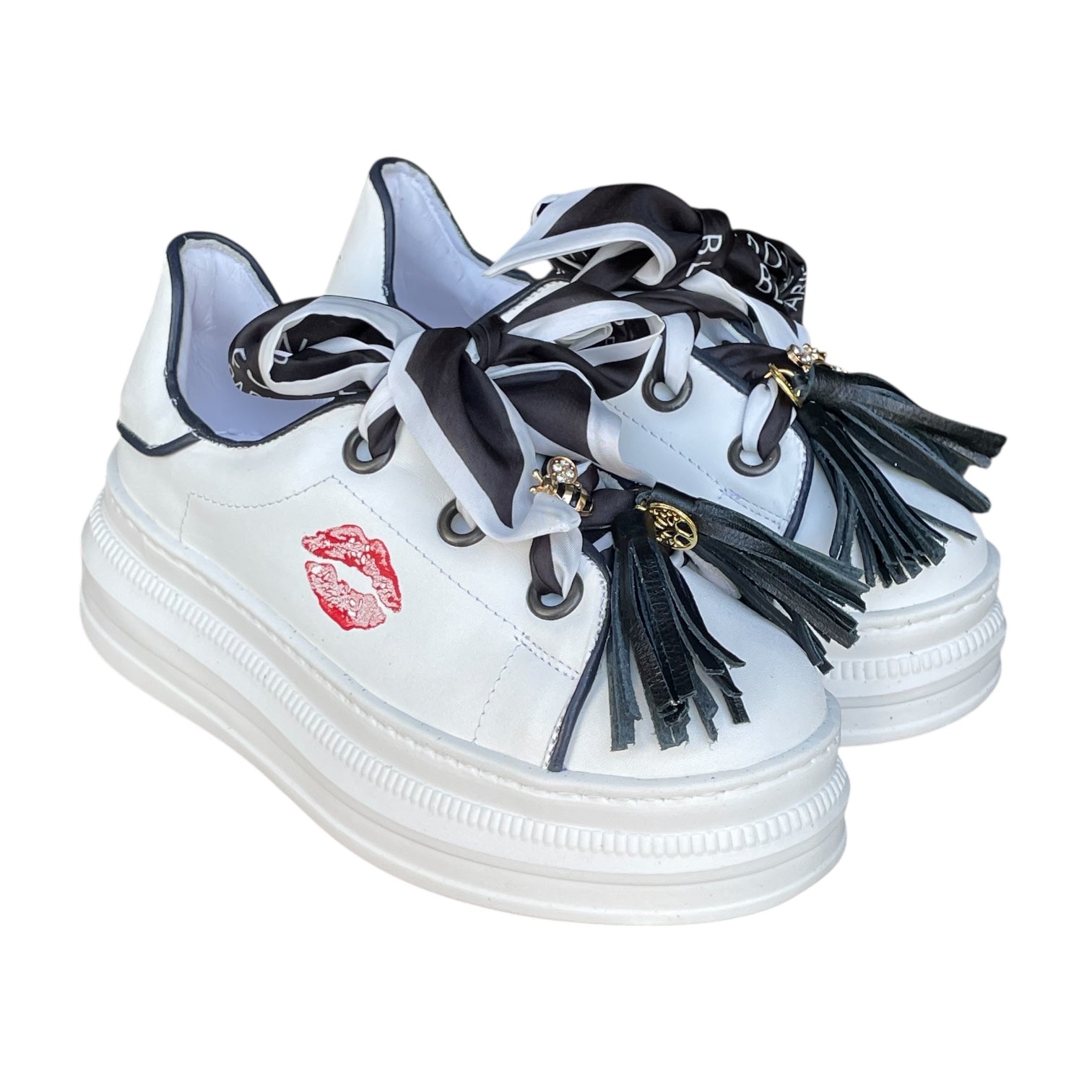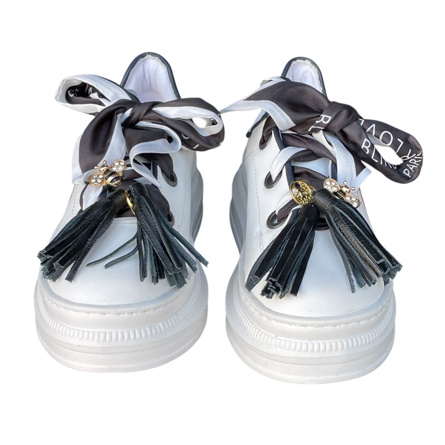 Nuestros zapatos son 100% piel, ultra cómodos y cada par incluye una mascada y un pompón. ¡Personalízalos aún más! También puedes comprar mascadas, pompones y pines por separado. Descubre la colección completa.