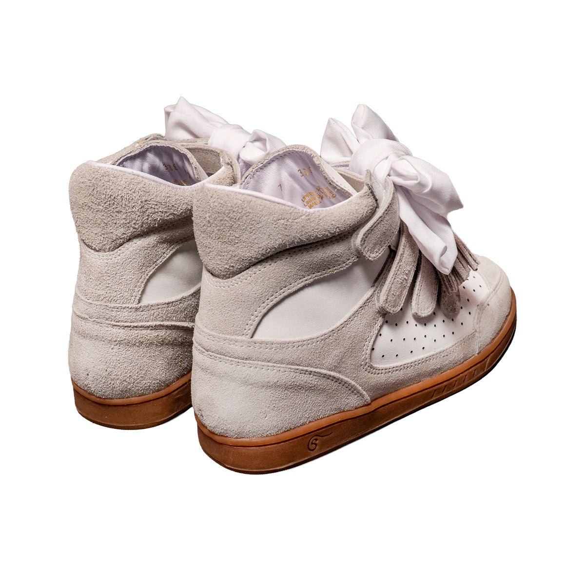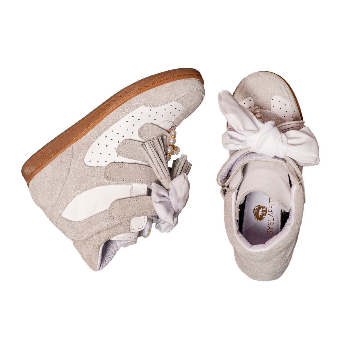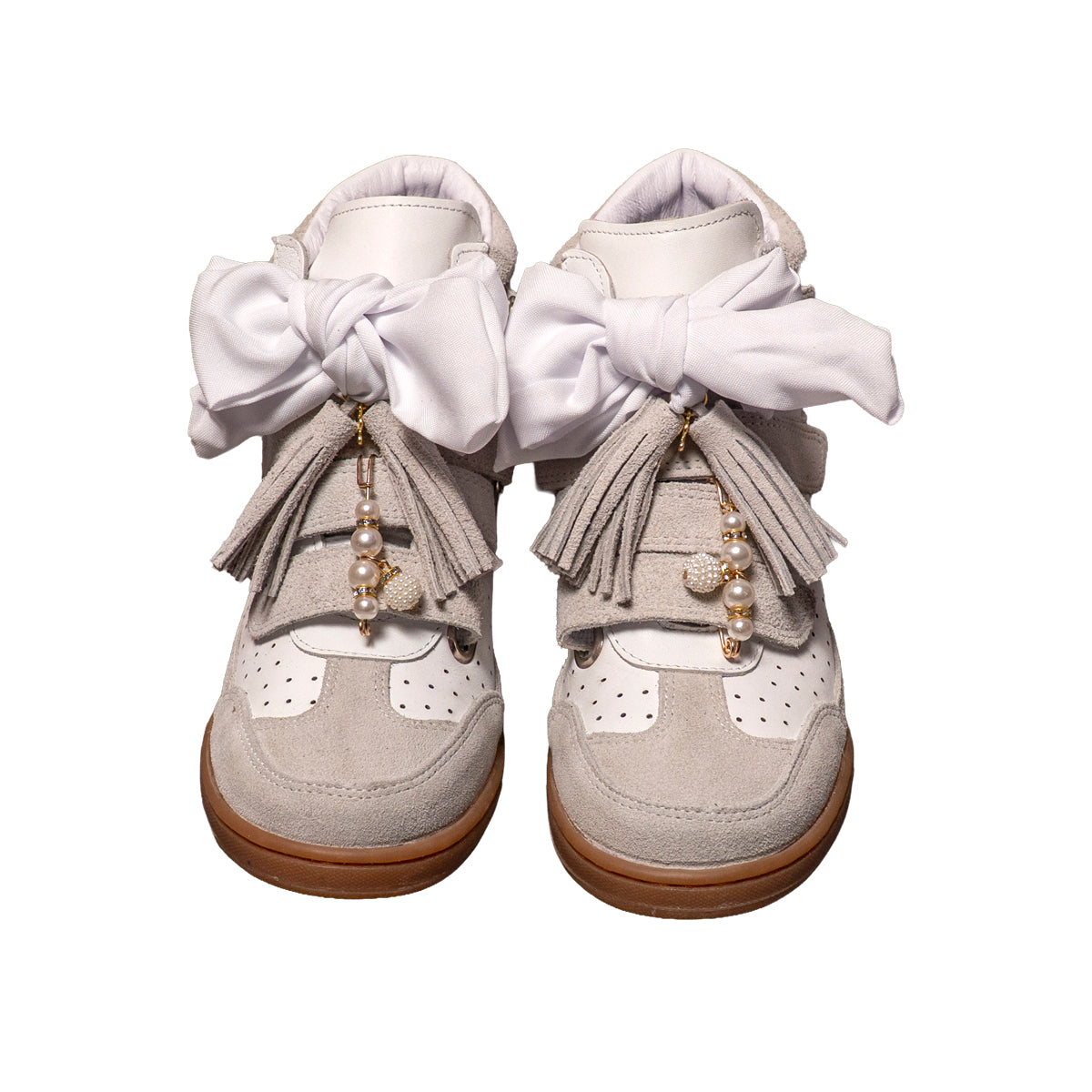 Nuestros tenis botín 100% piel en color blanco ofrecen diseño, comodidad y altura en un solo modelo.