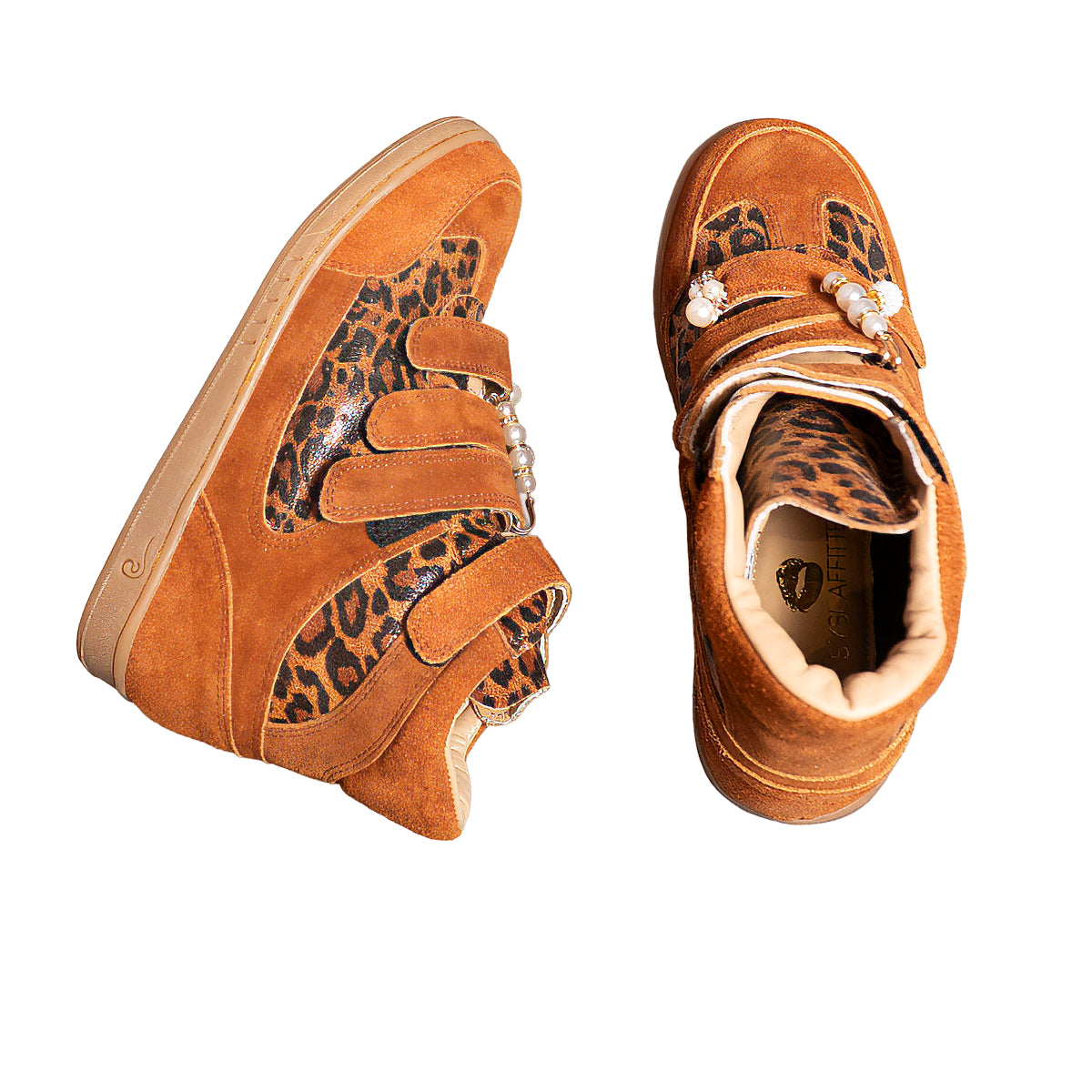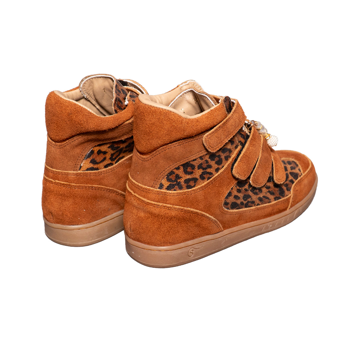 Nuestros tenis botín 100% piel en color camel ofrecen diseño, comodidad y altura en un solo modelo.