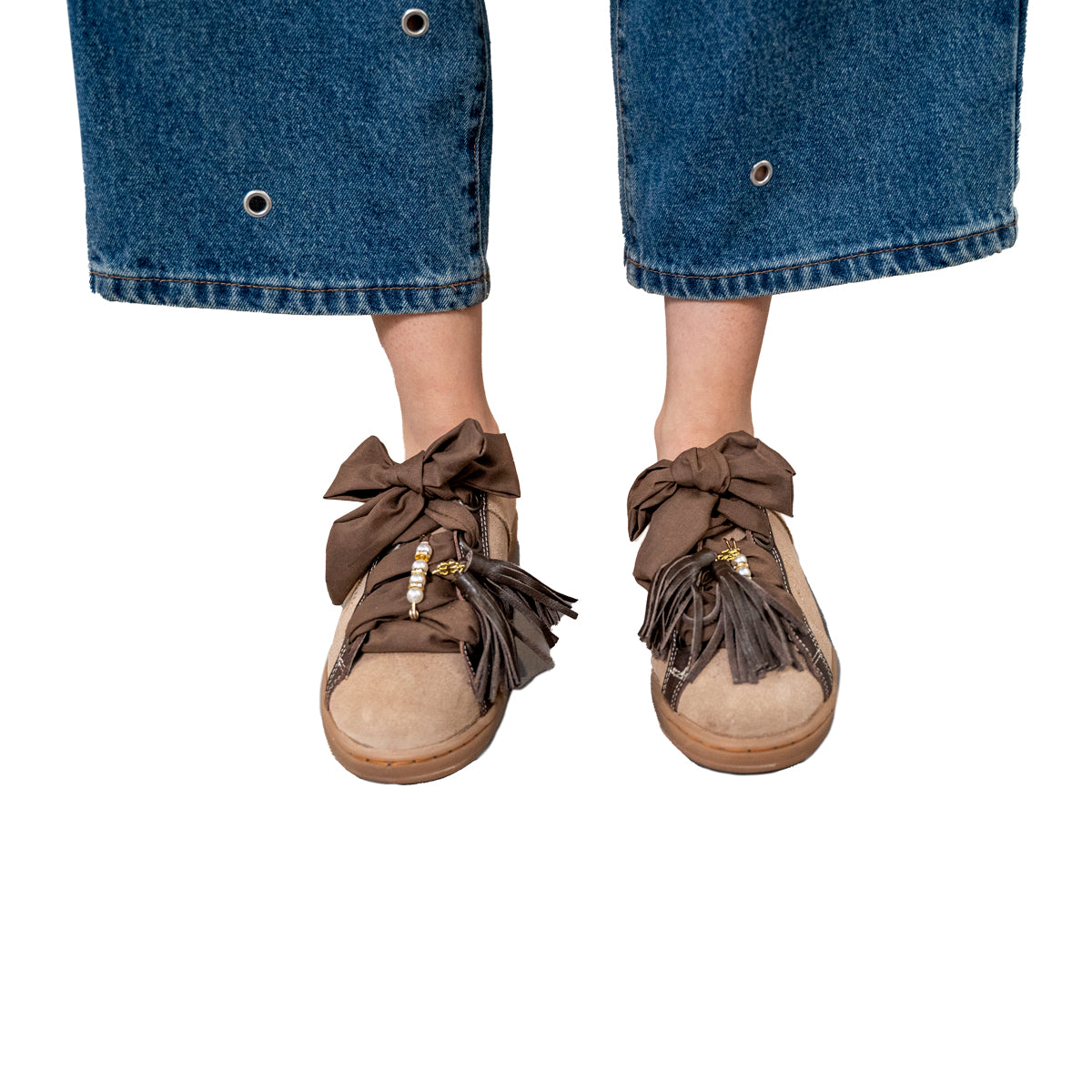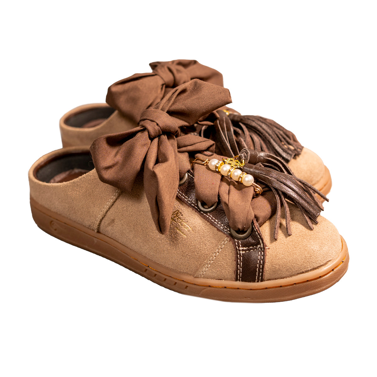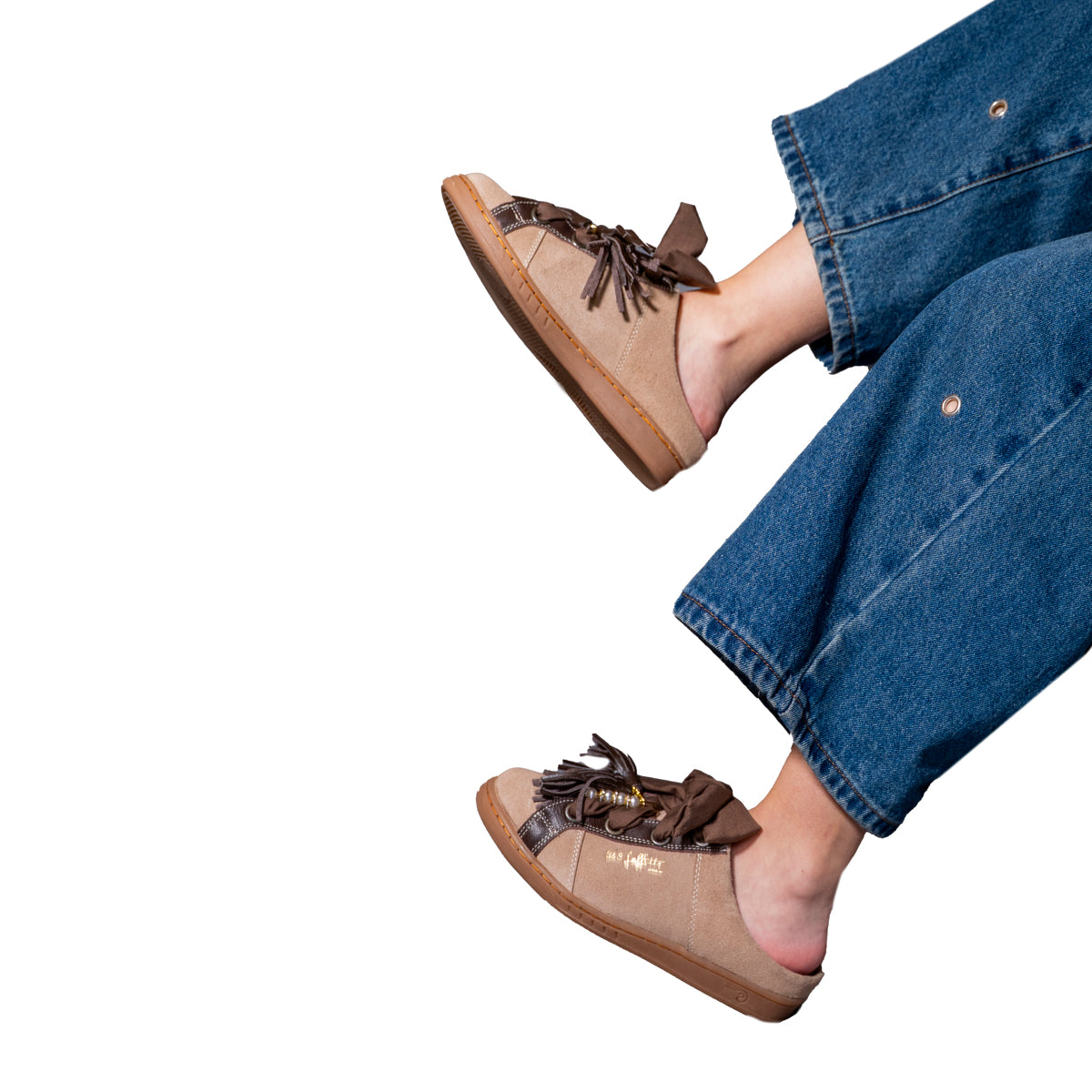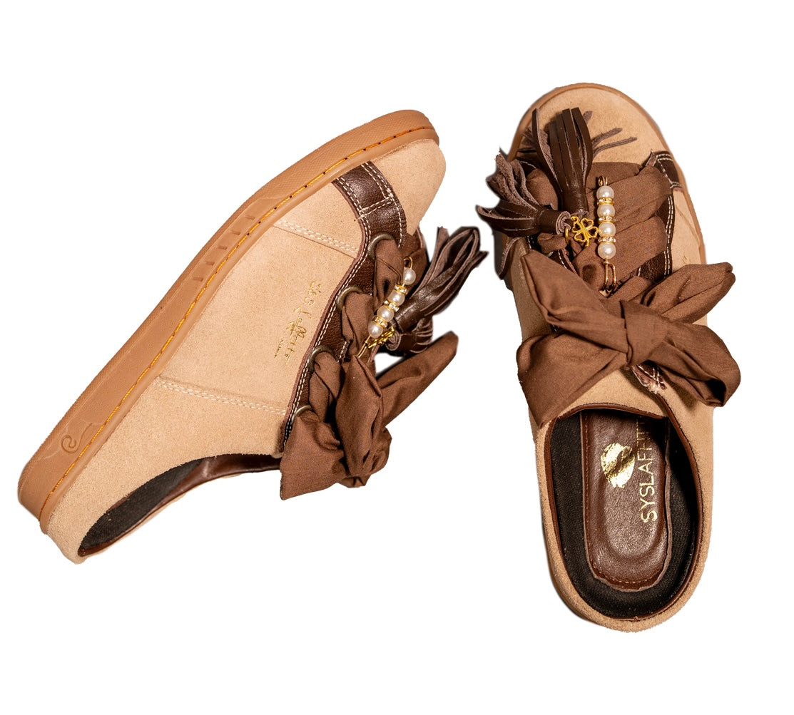Nuestros zapatos son 100% piel, ultra cómodos y cada par incluye una mascada y un pompón. ¡Personalízalos aún más! También puedes comprar mascadas, pompones y pines por separado. Descubre la colección completa.