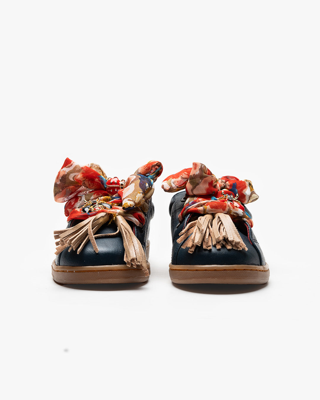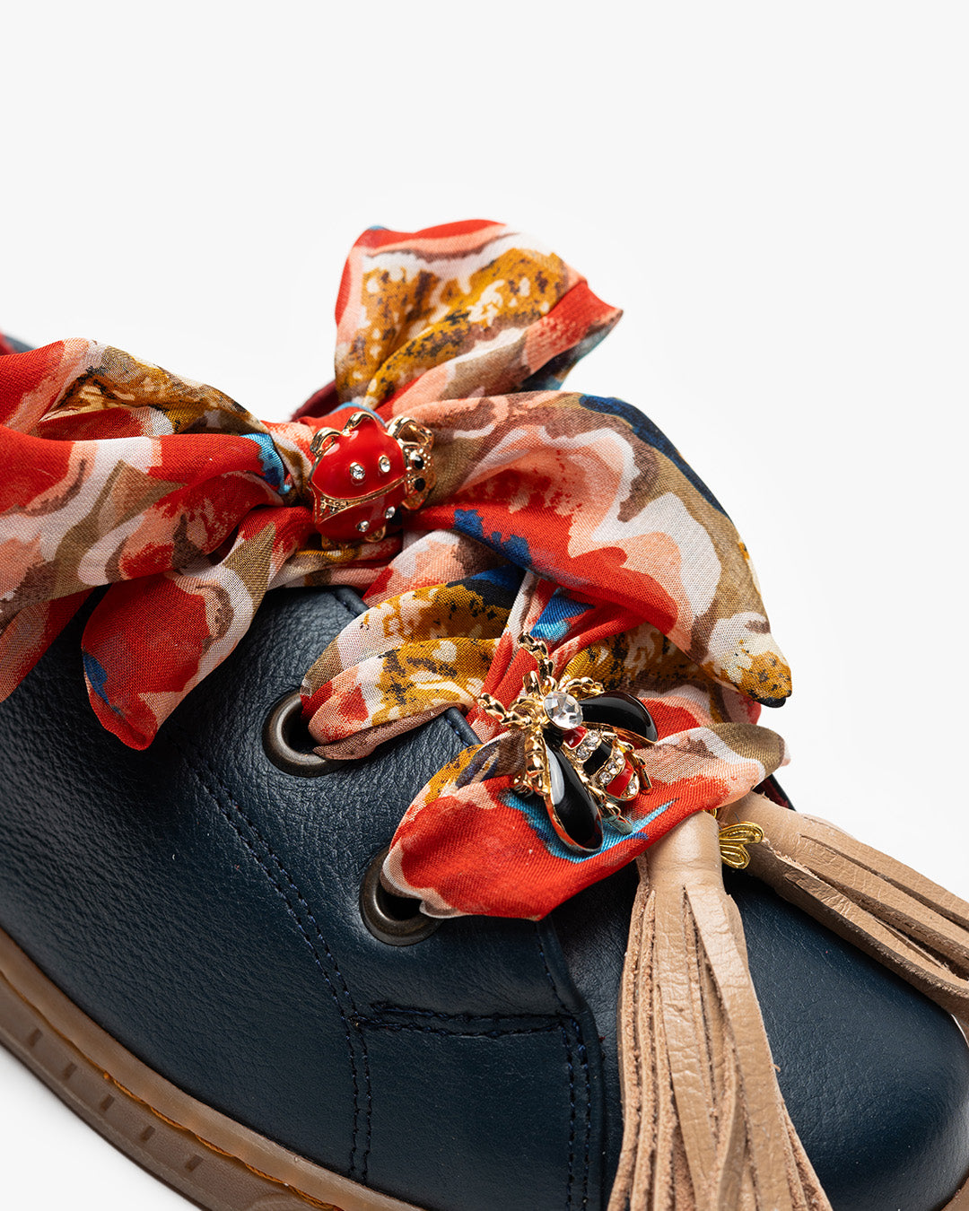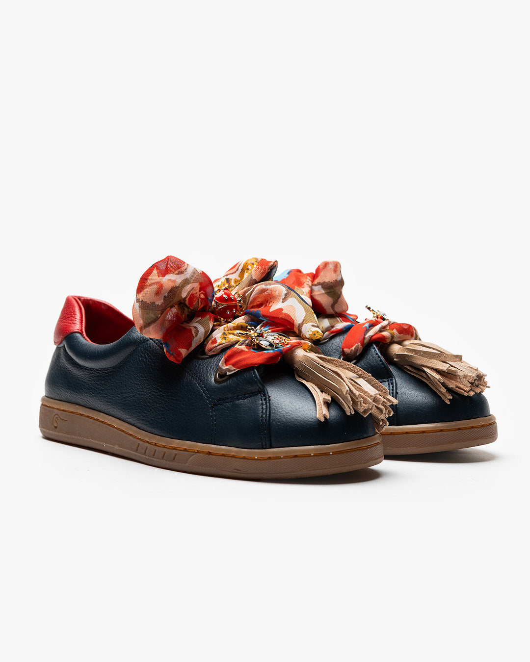 Nuestros tenis son 100% piel, ultra cómodos y cada par incluye una mascada y un pompón. ¡Personalízalos aún más! También puedes comprar mascadas, pompones y pines por separado. Descubre la colección completa.
