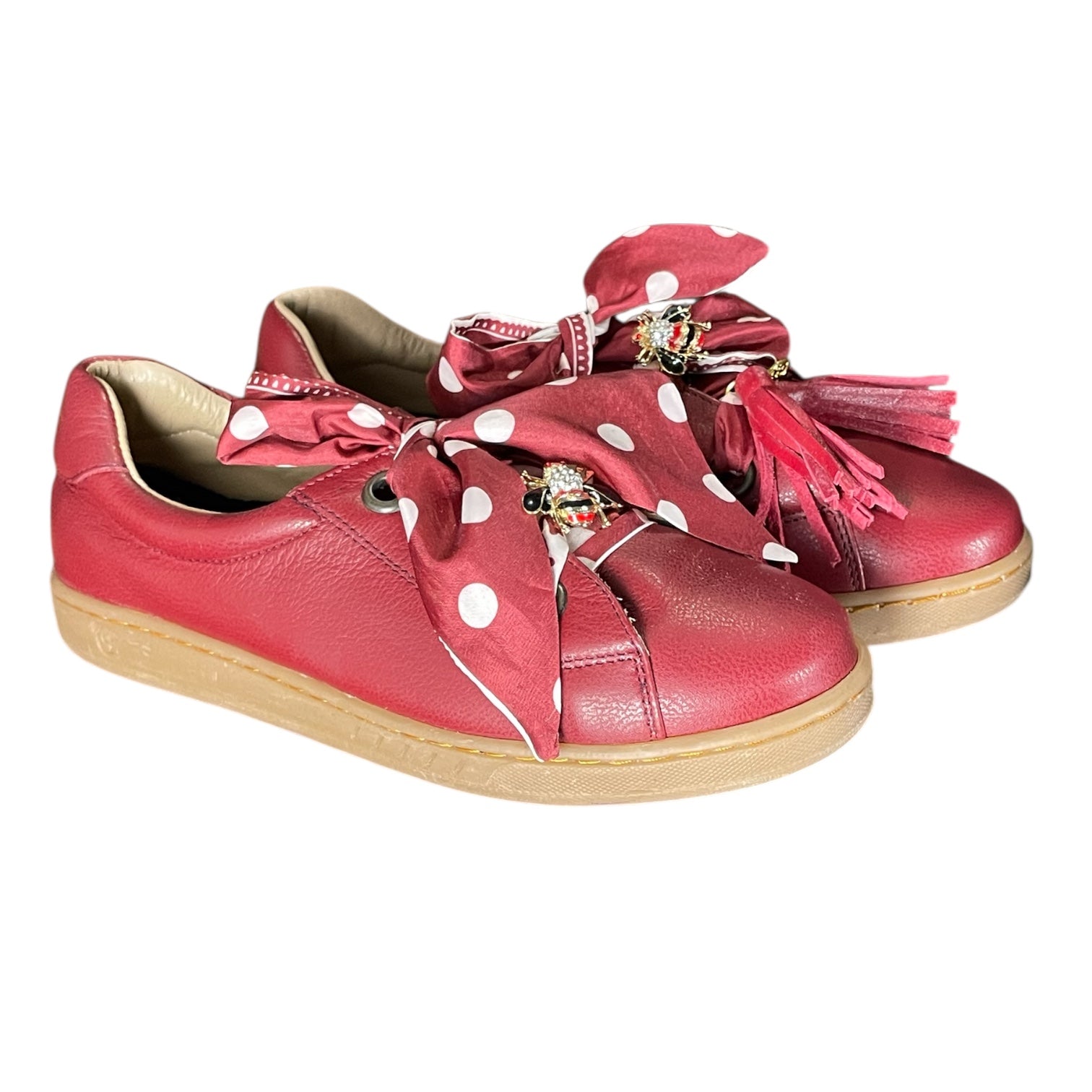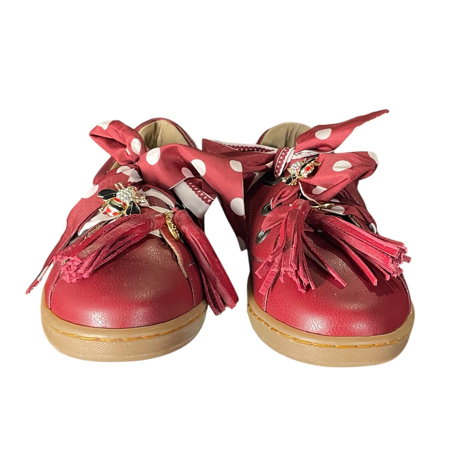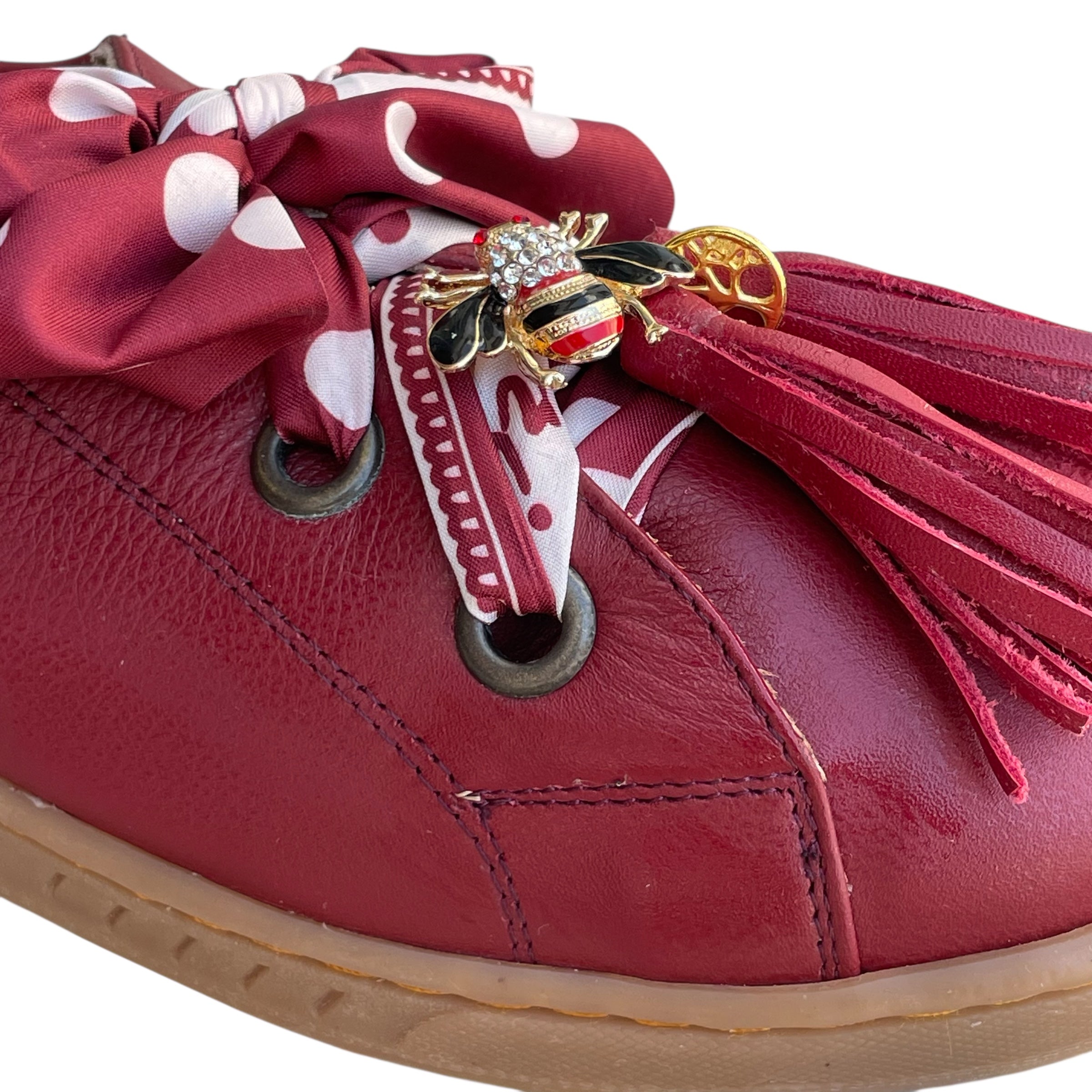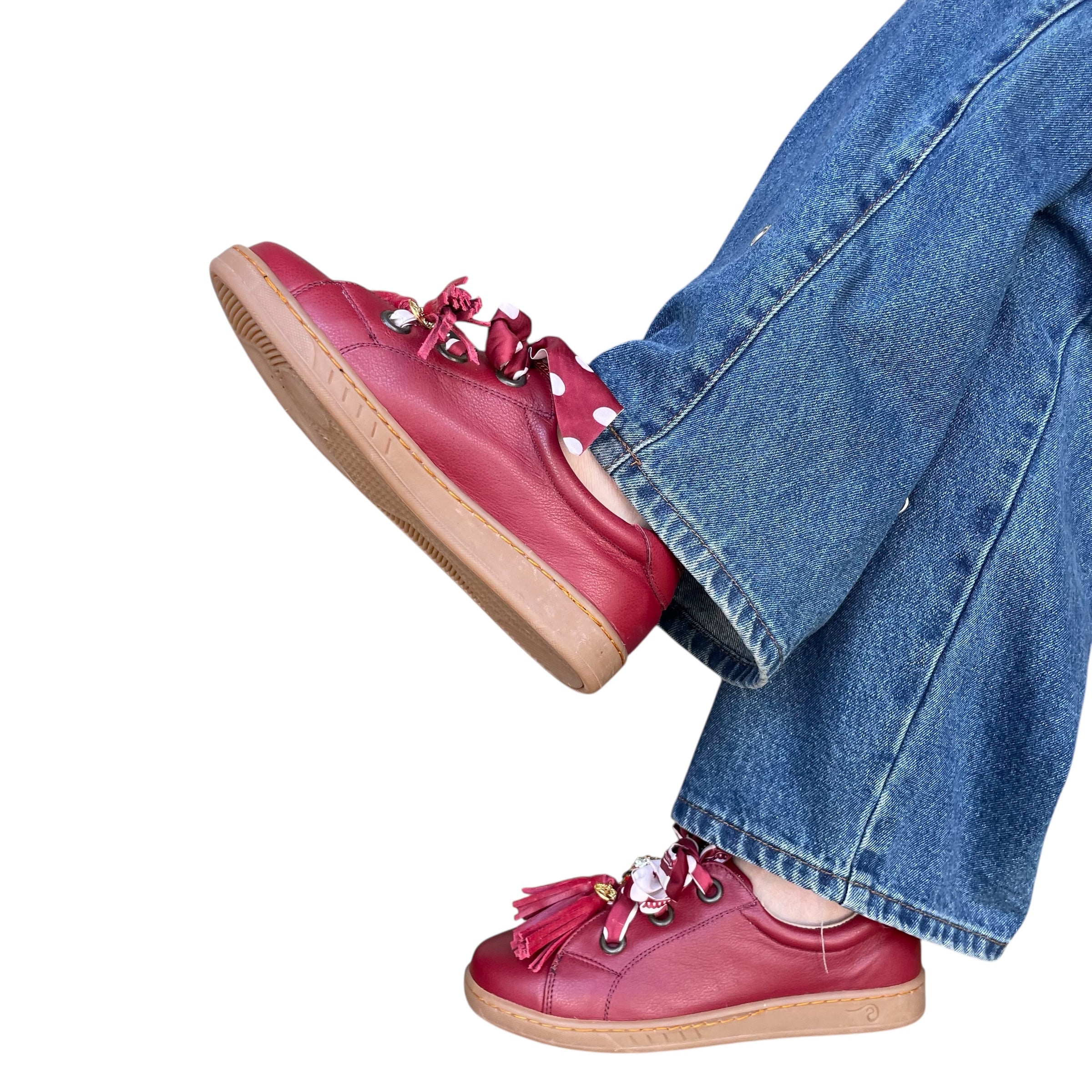 Nuestros tenis son 100% piel, ultra cómodos y cada par incluye una mascada y un pompón. ¡Personalízalos aún más! También puedes comprar mascadas, pompones y pines por separado. Descubre la colección completa.