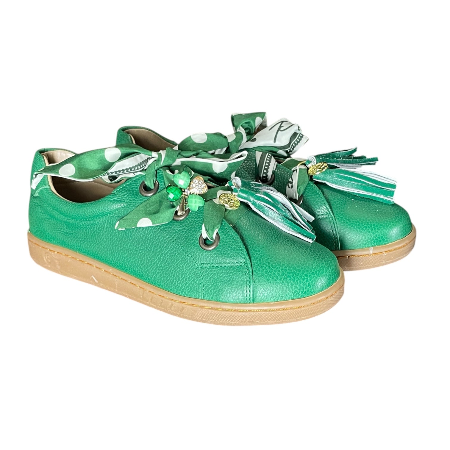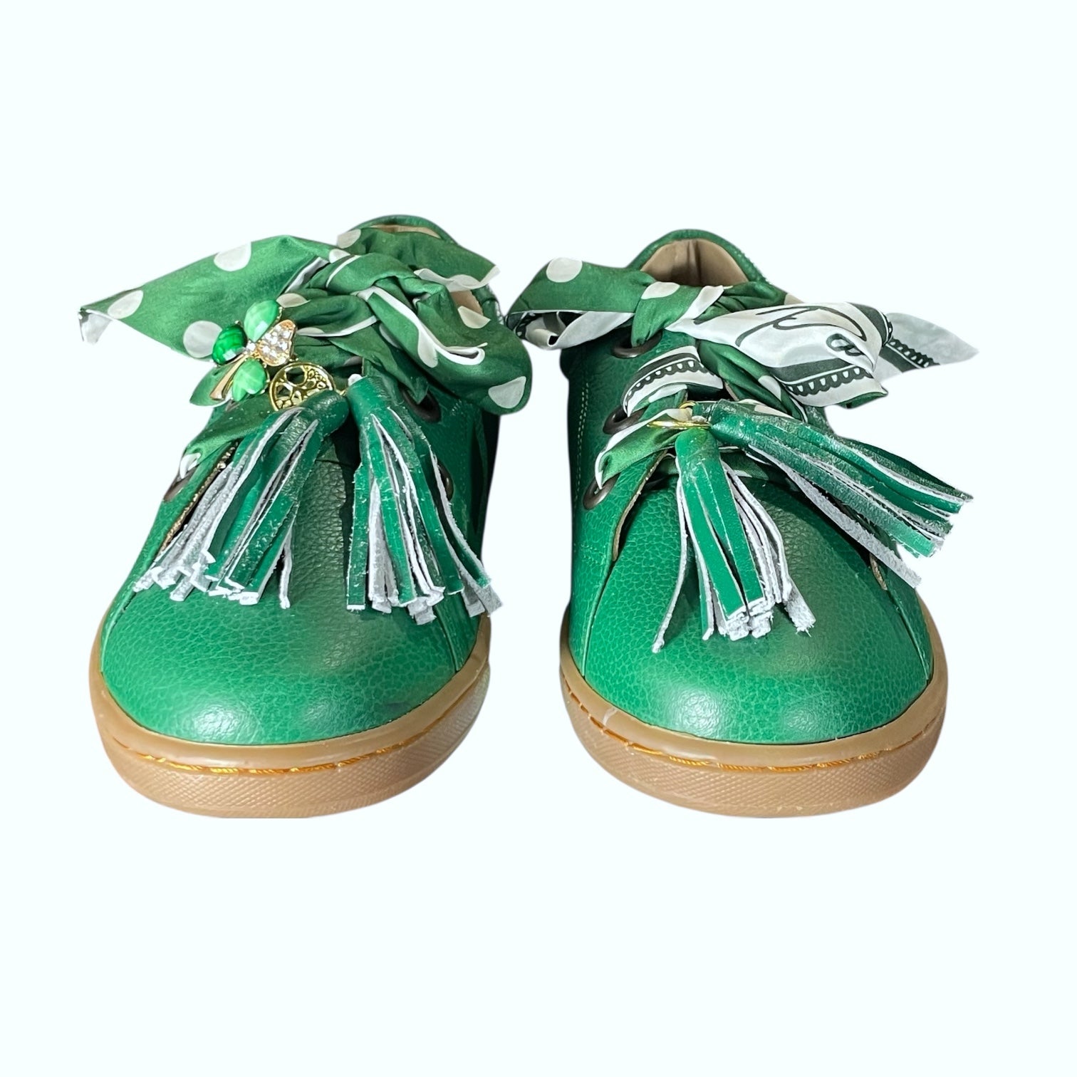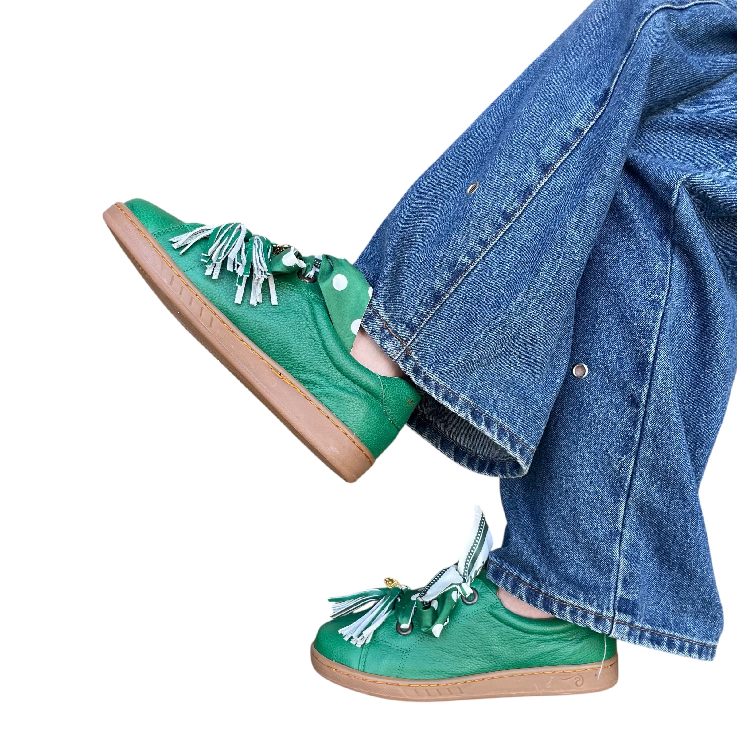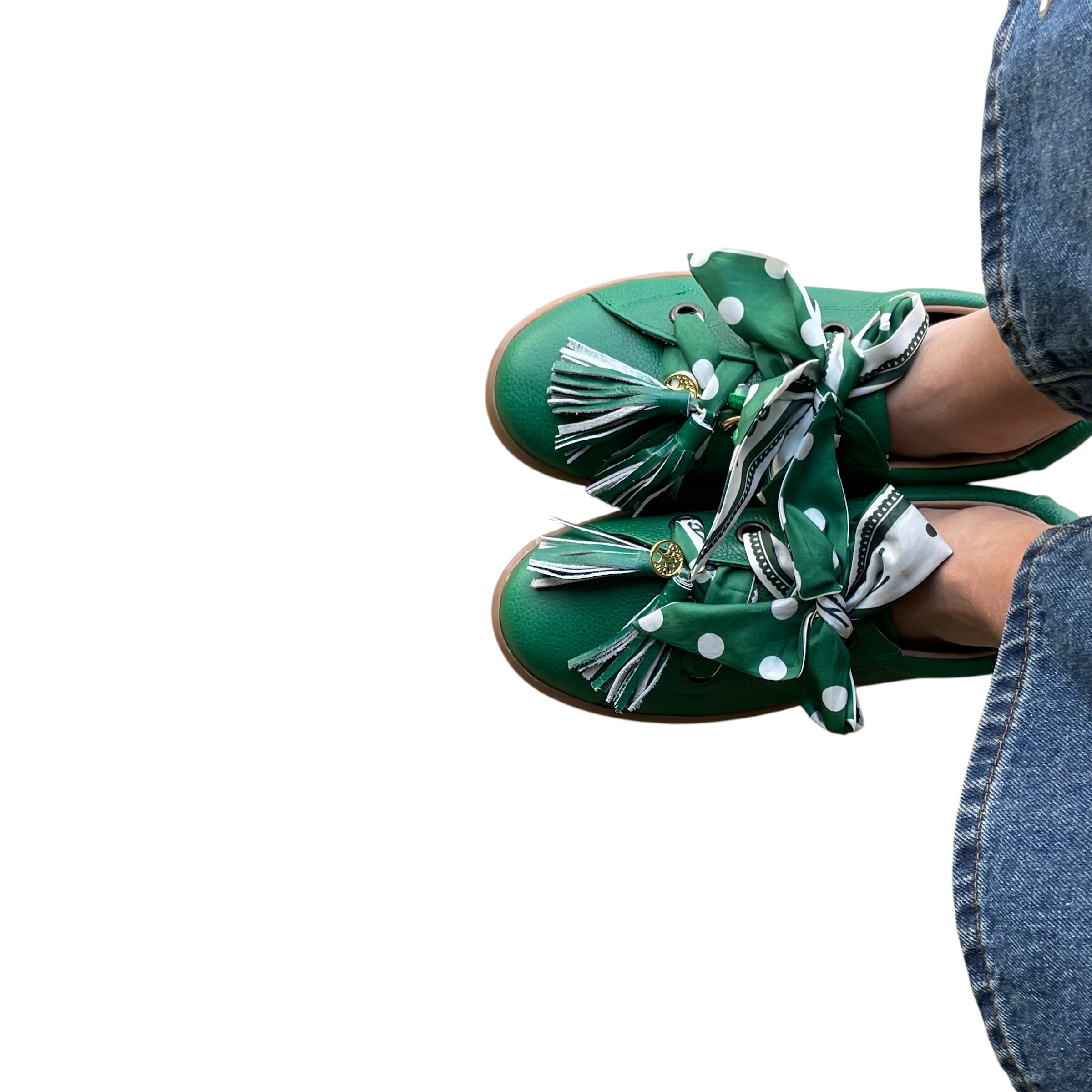 Nuestros tenis son 100% piel, ultra cómodos y cada par incluye una mascada y un pompón. ¡Personalízalos aún más! También puedes comprar mascadas, pompones y pines por separado. Descubre la colección completa.
