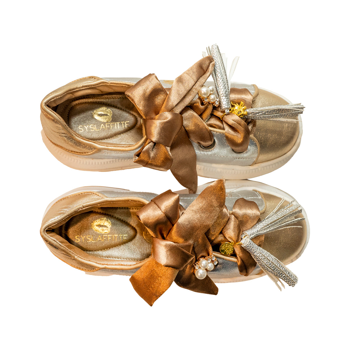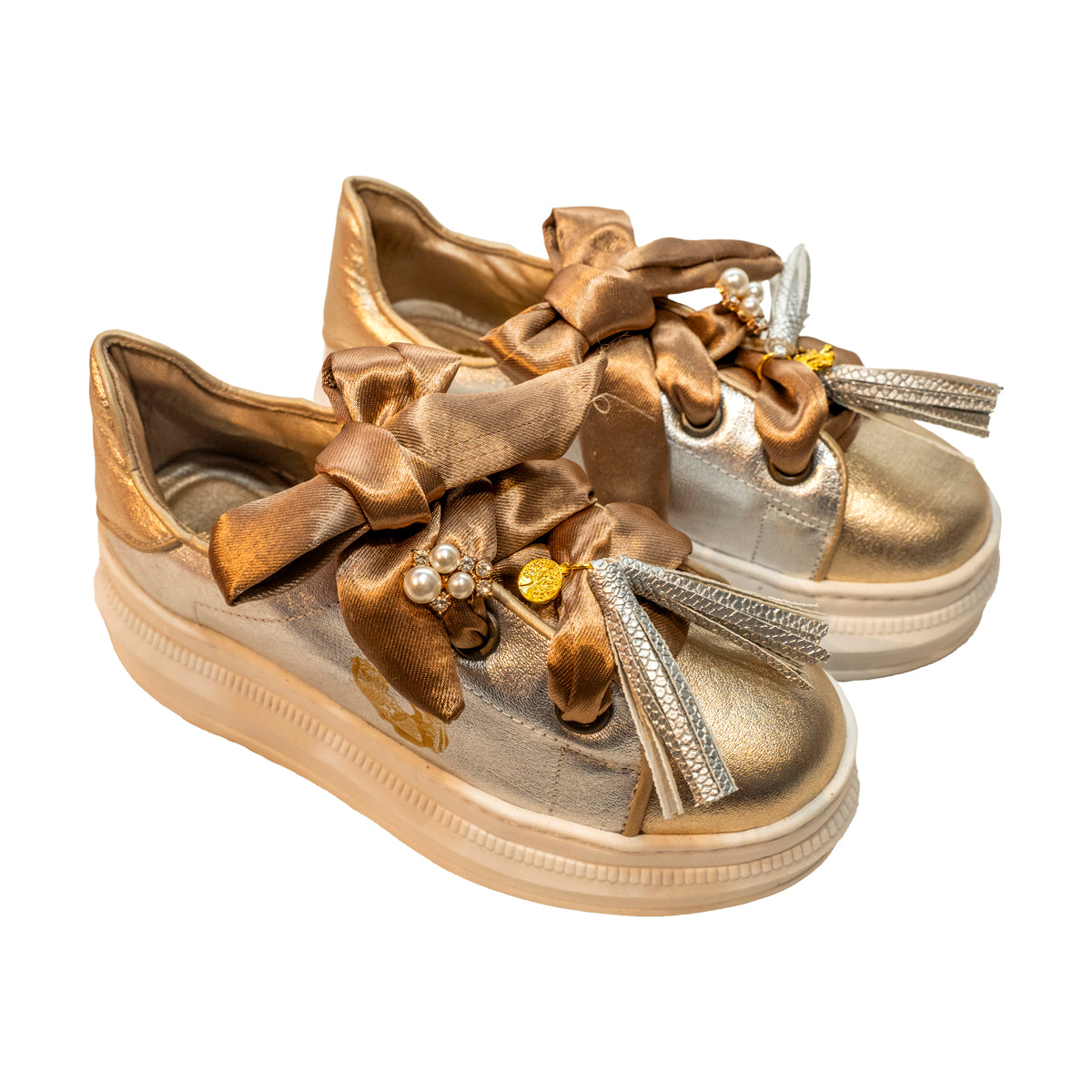 Tenis beso 100% piel oro y plata