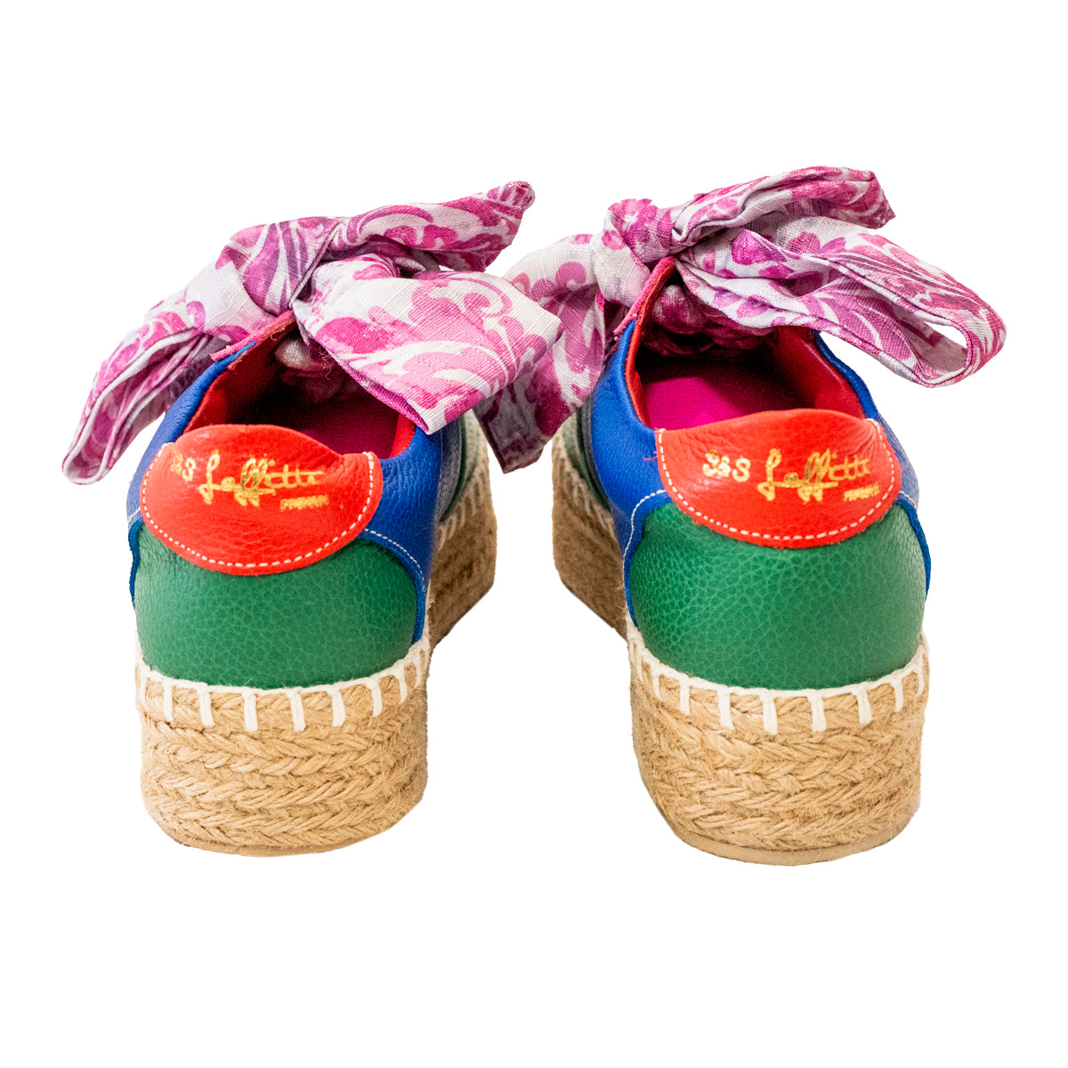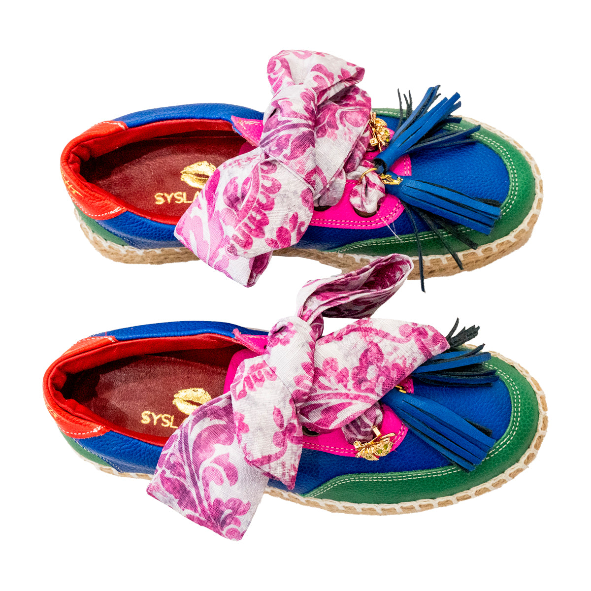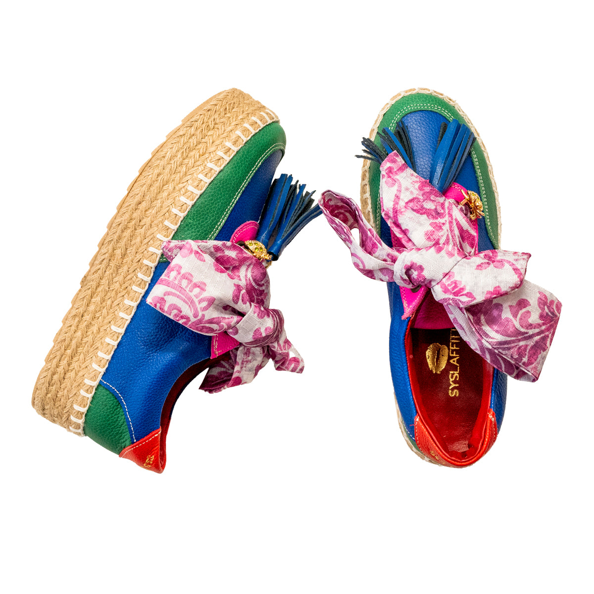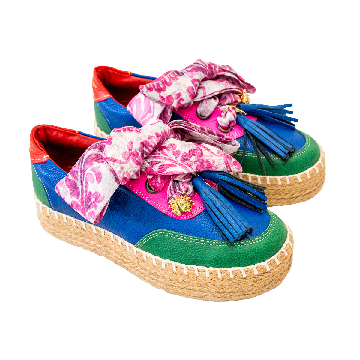 Nuestros zapatos son 100% piel, 5 cm de altura, yute, ultra cómodos y cada par incluye una mascada y un pompón. ¡Personalízalos aún más! También puedes comprar mascadas, pompones y pines por separado. Descubre la colección completa.