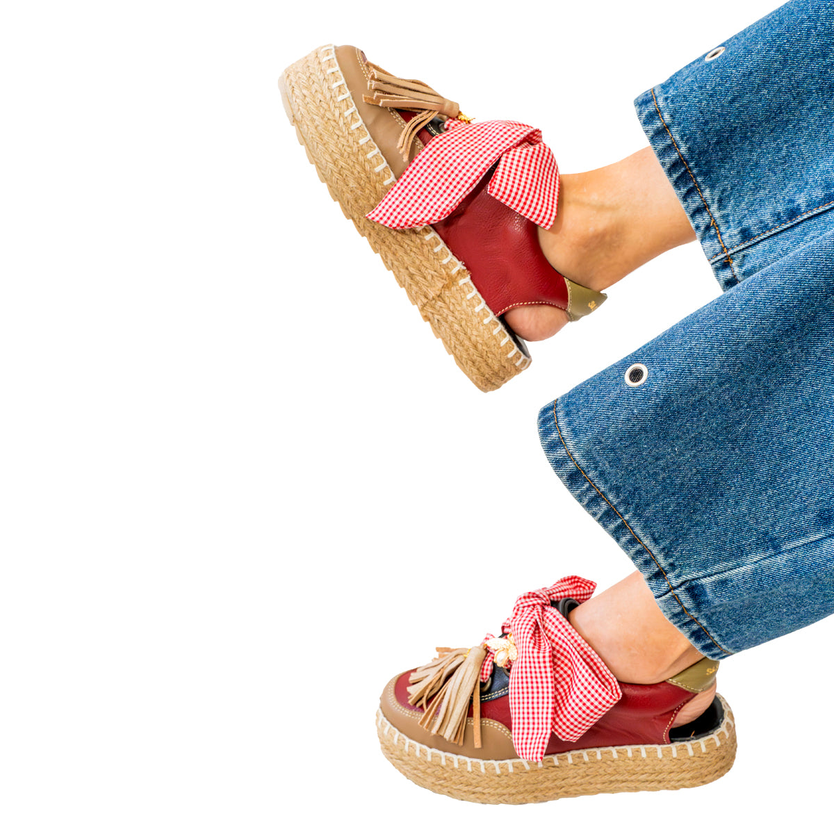 Tenis Alpargata Destalonada 100% piel Rojo - Camel