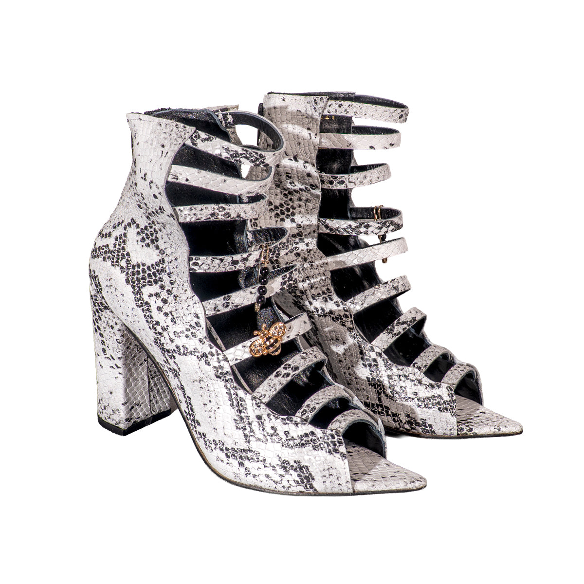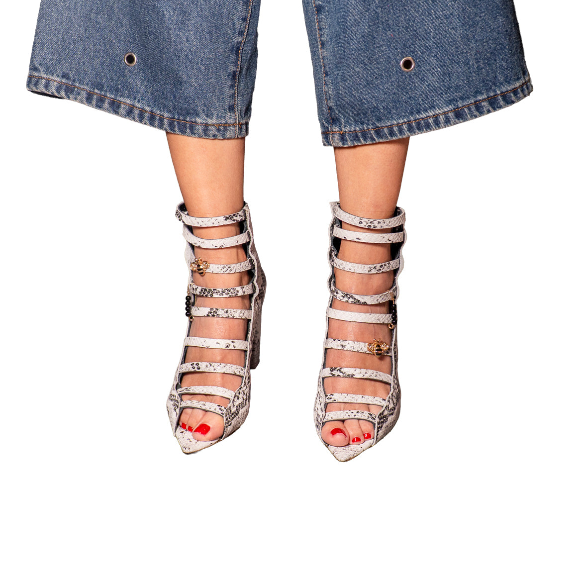 Zapatillas Cortas Tiras 100% Piel Serpiente Tacón 8 cm superior cómodas